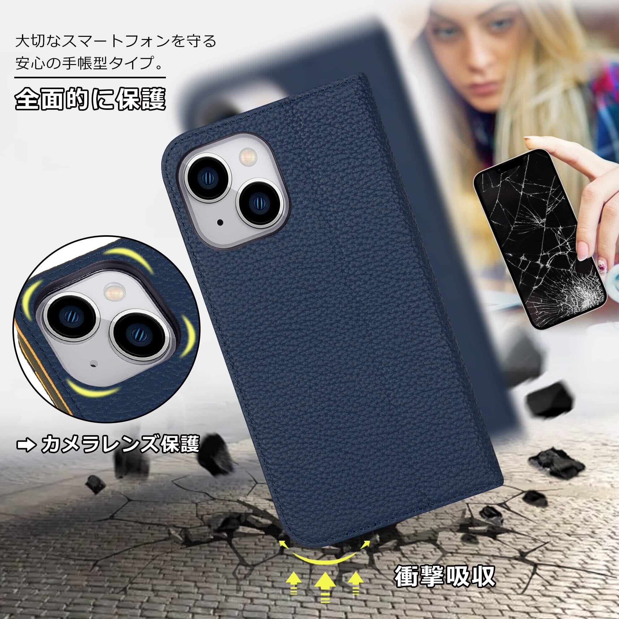 【新春セール】VISOUL iphone13 ケース 手帳型 本革 レザーケース マグネット式 スタンド機能付き手帳型ケース カード収納 携帯ケース 全面保護 マグネット 柔軟なTPU素材 スマホケース iphone 13 対応 6.1インチ アイフォン13 シュリンクレザー iPhone13 ネイビー レモン | impsmile