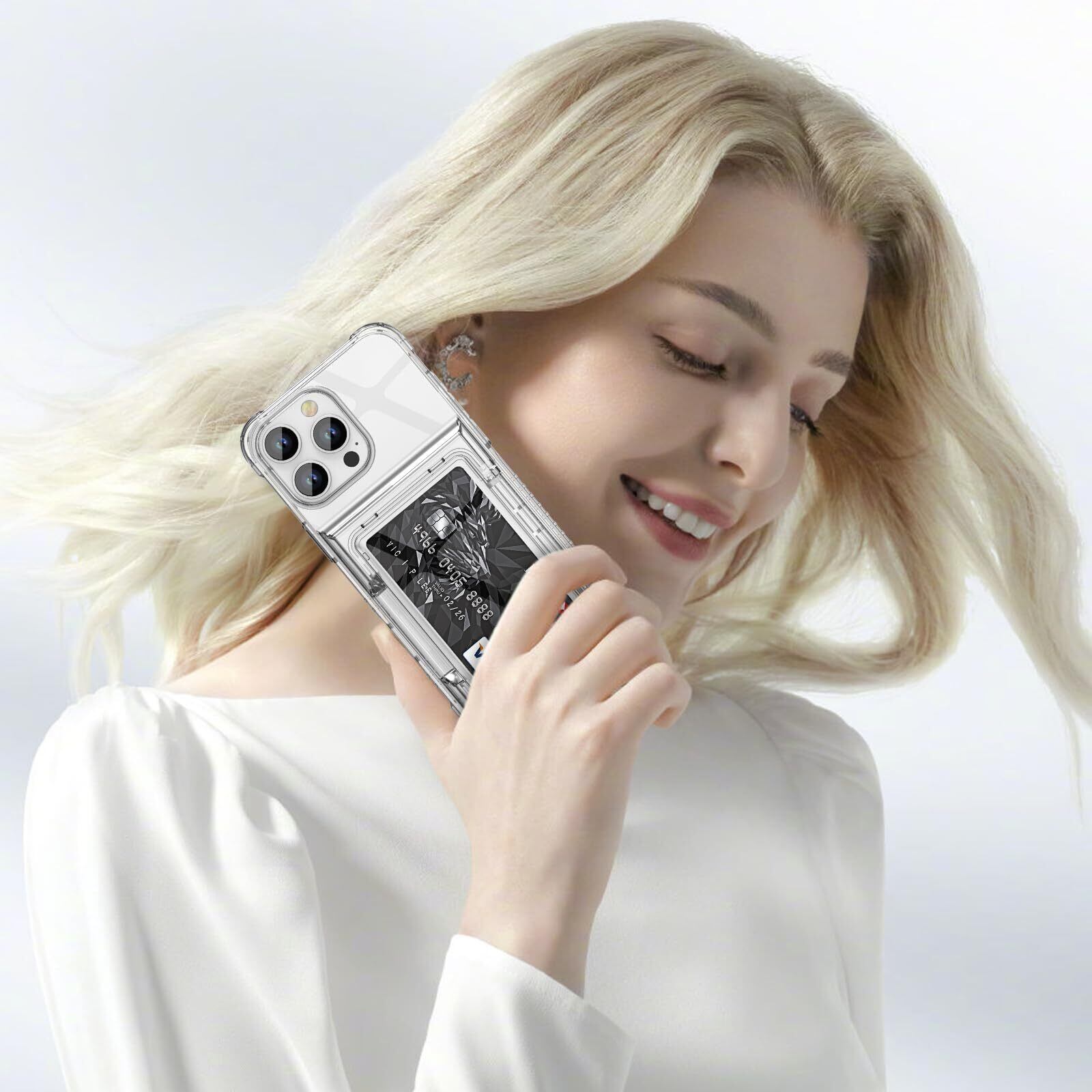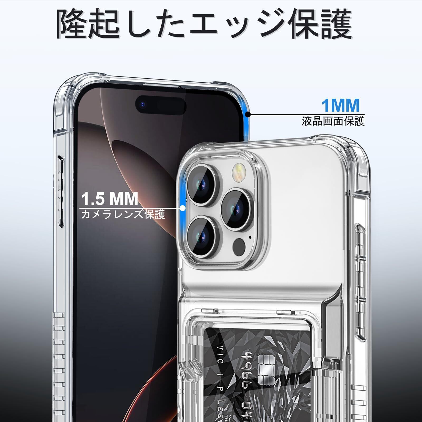 COOLDEN いphone16pro ケース カード 収納 背面 クリア 対応 iPhone 16 pro ケース カード入れ 手帳型 TPU + PCカードスロット 2重構造 耐衝撃 米軍MIL規格 対応 アイホン16proケース 透明 カバー 対応 iPhone16プロケース 対応 アイフォン16pro ケース クリア 写真 カード 収納 6.3インチ