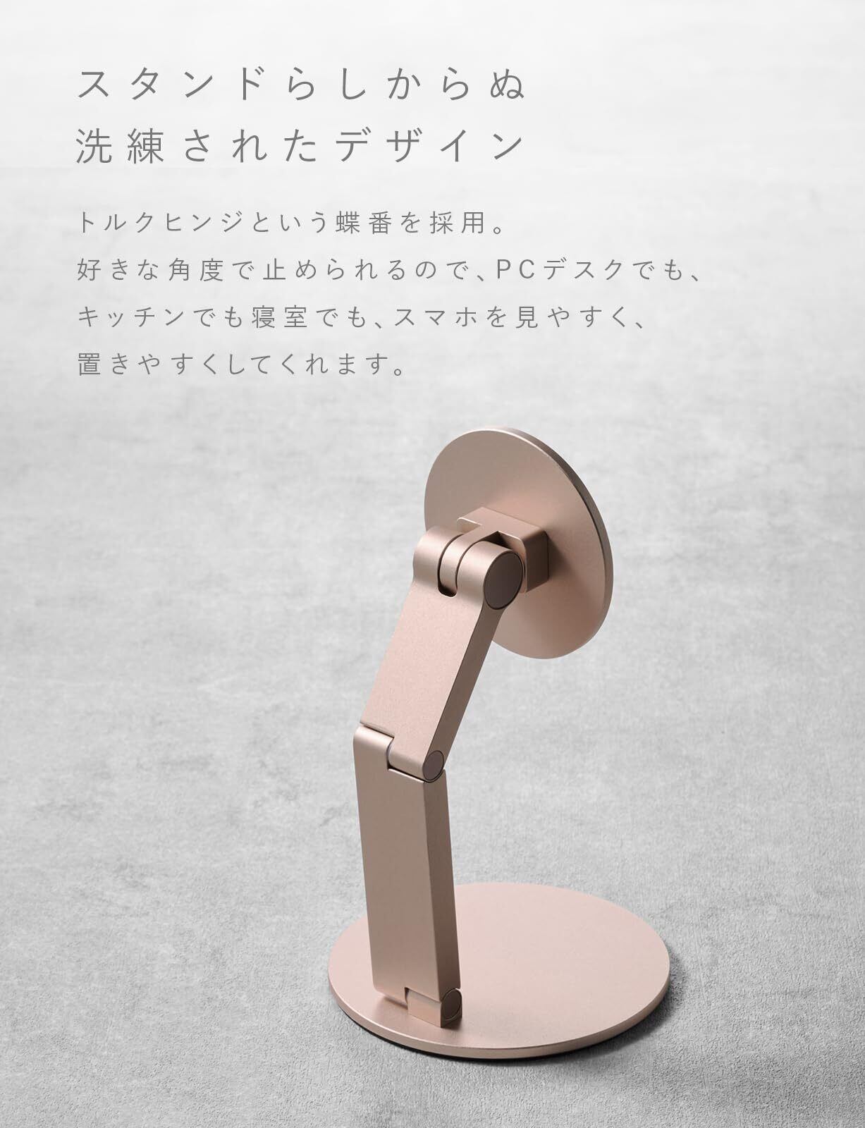 マグネット吸着タイプのスマホスタンド:強力なマグネットを内蔵しており、重量感のある台座で安定した使い心地。お仕事でも、おうちでも、スマホやタブレットになじむデザイン。※充電機能はついておりません。