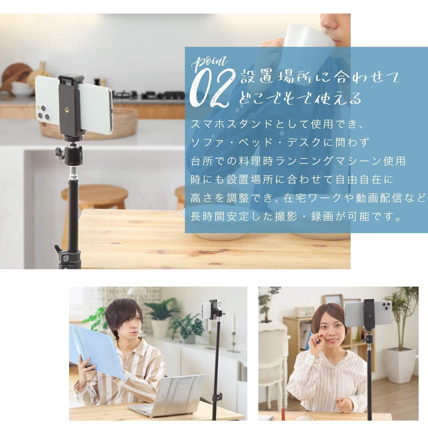 【工場出荷本数50万本以上!2019年販売開始のロングセラー商品】高く伸ばせるスマホ三脚スタンドです。高い位置にスマホを固定して、長時間安定した撮影・録画が可能です。 三脚は160cmと210cmの2サイズをご用意しております