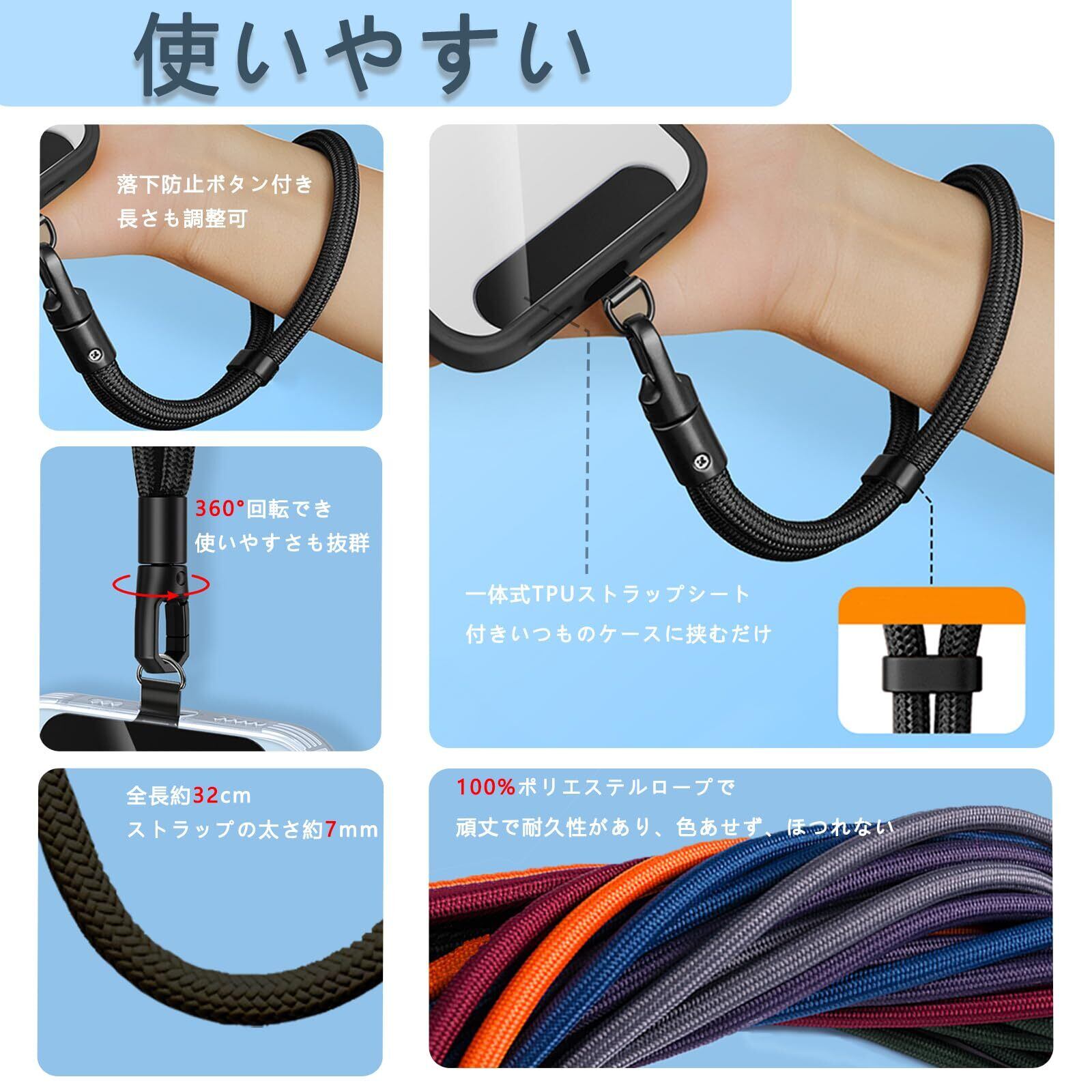 【使いやすい】全長約32cm、ストラップの太さ約7mm;調節ボタン付きでハンドストラップの長さを調整可能です。360°回転し、使いやすさも抜群です。さらに、手触りが柔らかく重量は24gで手首に負担になりません。
