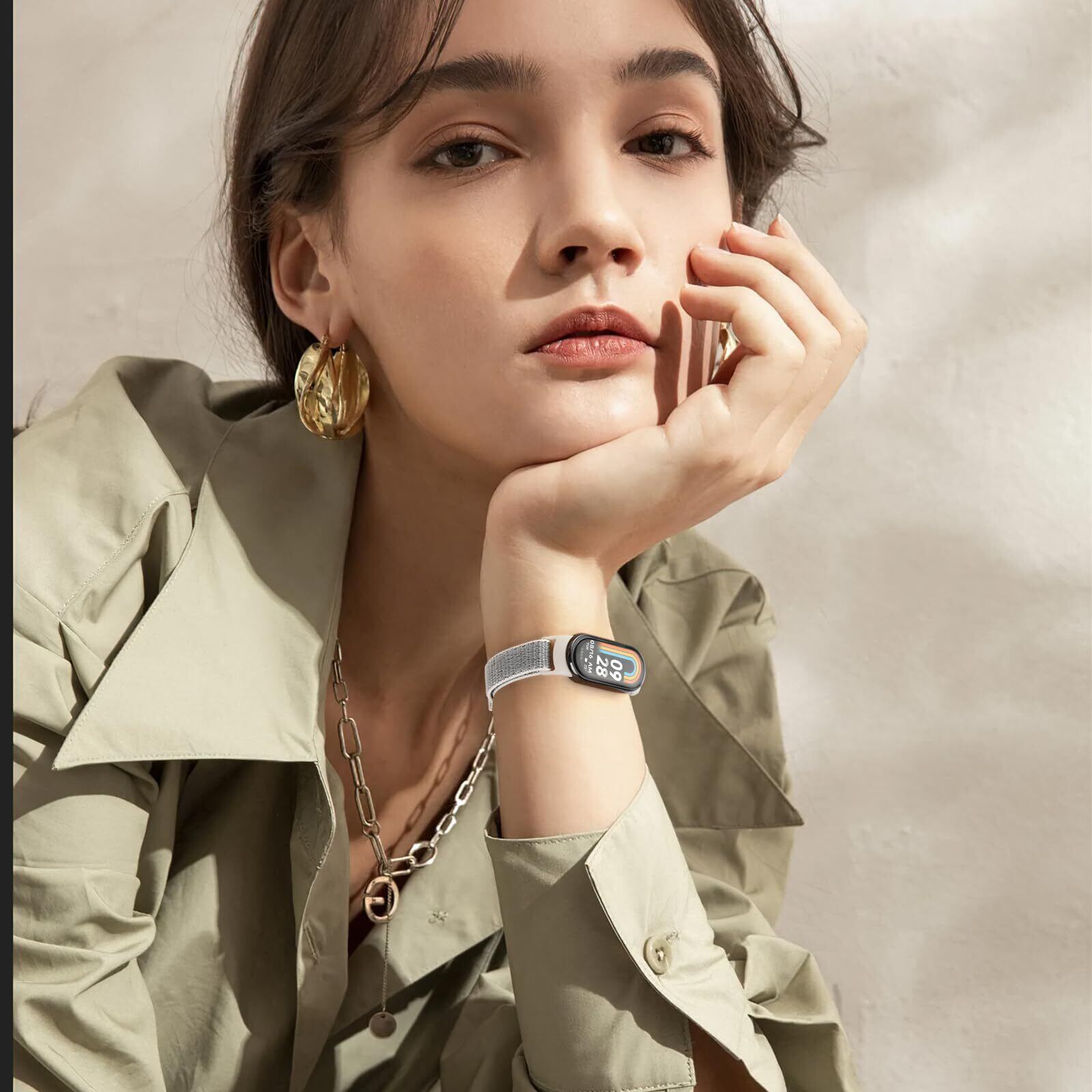 【織ナイロン素材】Xiaomi Mi Band 8 ナイロン スポーツ ループ バンドは、天然の熱放散素材である二層ナイロン織で作られており、肌側に高密度のループがあり、湿気を逃がしながら柔らかいクッション性を提供します。 耐久性があり、柔らかく通気性があり、軽量で、肌を刺激せず、お手入れが簡単です。