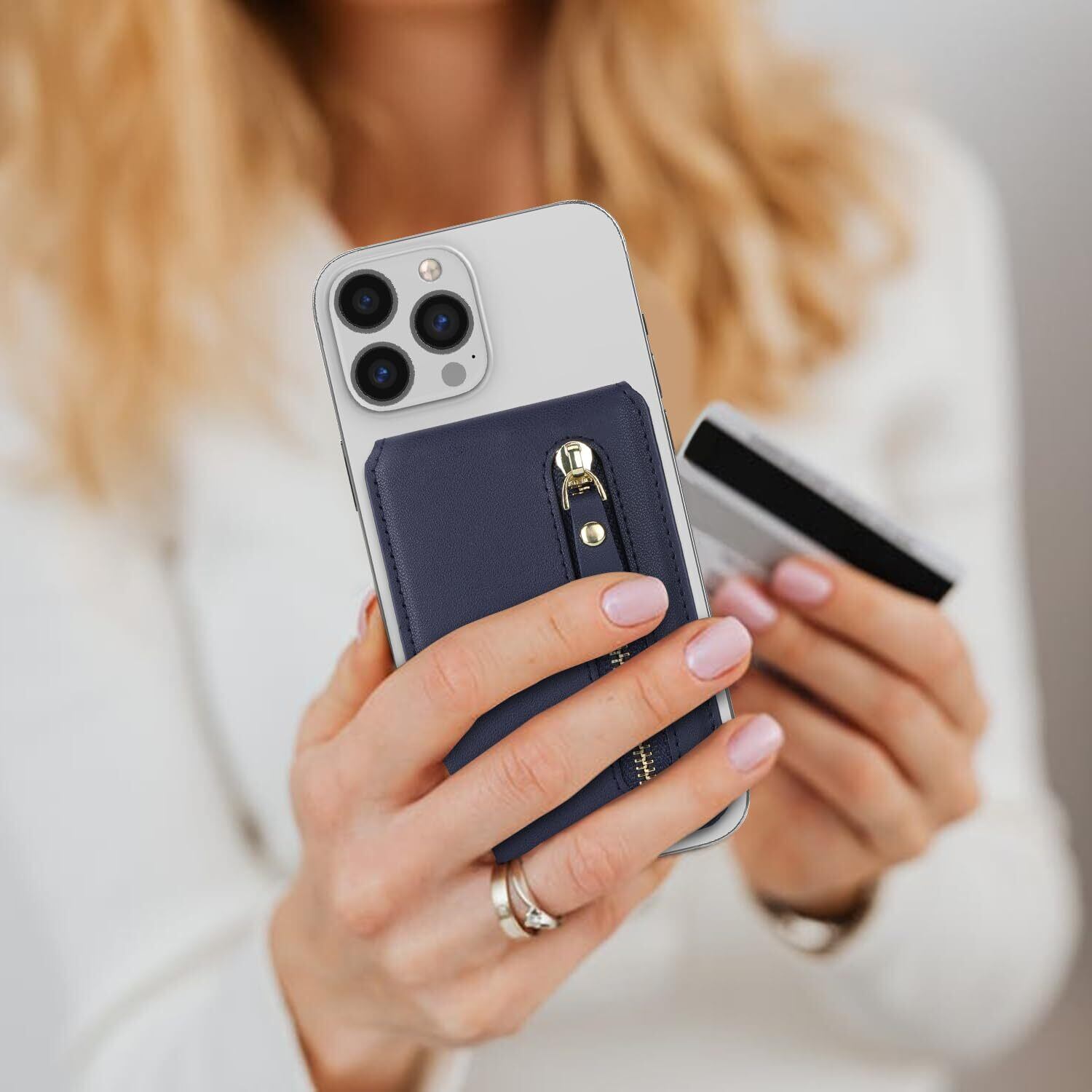 Havaya カードケース MagSafe対応 マグネット内蔵 ジッパー iPhone 16 Pro Max/16 Pro/16 Plus/16、15 Pro Max/15 Pro/15 Plus/15、14 Pro Max/14 Pro/14 Plus/14、13 Pro Max/13 Pro/13/13 Mini、12 Pro Max/12 Pro/12/12 Mini-ブルー
