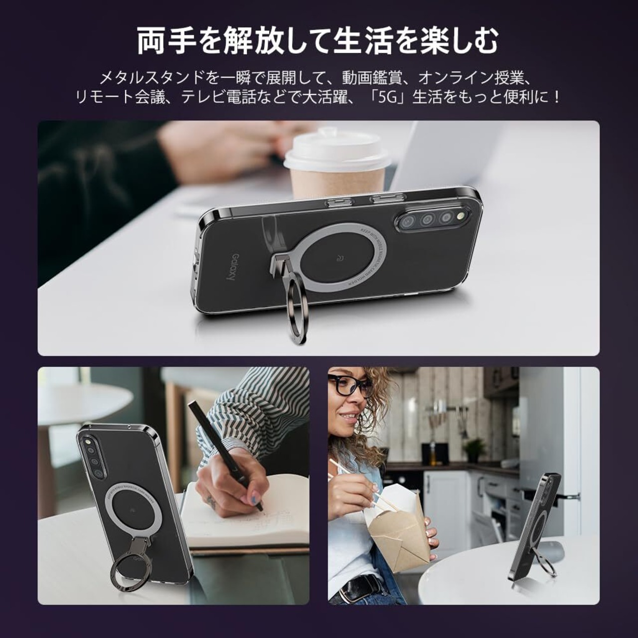 【2022最新】Galaxy A41 ケース SC-41A SCV48 MagSafe対応 透明 リング付き サムスン ギャラクシーA41 クリア スマホケース タンド機能 ストラップホール付き 擦り傷防止 滑り止め 落下防止(Galaxy A41 透明ケース) | impsmile