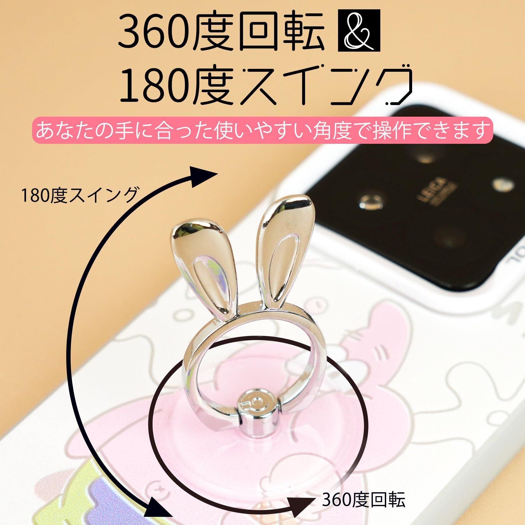 兎 透明 スマホリング ネコ 落下防止リング ホールドリング 薄型 スタンド 車載ホルダー 360回転 iPhone/Android各種他対応 (兎型2個バラの金)