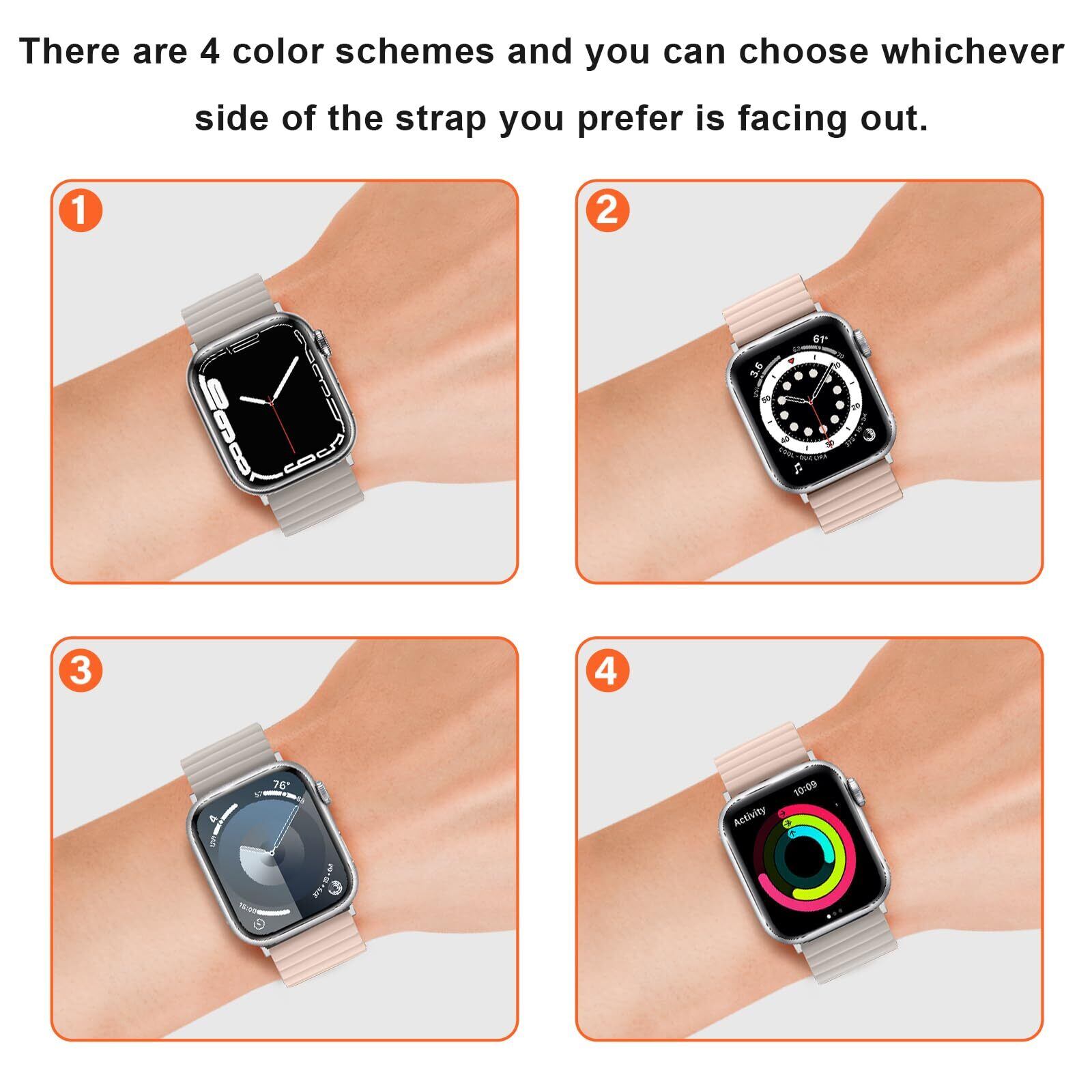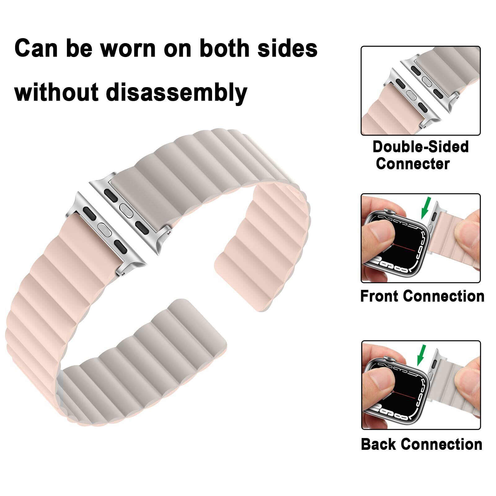 Anlinser コンパチブル Apple Watch バンド42mm 41mm 40mm 38mm、磁気両面リバーシブルアップルウォッチバンド シリーズ10/9/8/7/6/5/4/3/SE 用(スターライト/ピンク)