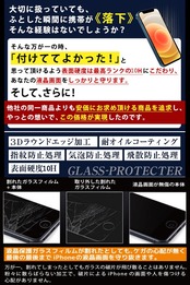 【日本旭硝子素材・最強硬度10H・飛散防止】ガラスフィルム一般的な液晶保護フィルムの約6倍の強度。衝撃は強化ガラスに吸収されますので、ディスプレイにかかる衝撃負荷を軽減し。ディスプレイが破損することを防ぎます。万が一の破損時も飛散防止加工によって破片はフィルムに張り付いた状態で破片がほとんど飛び散らない安全性の高いガラスになっています。