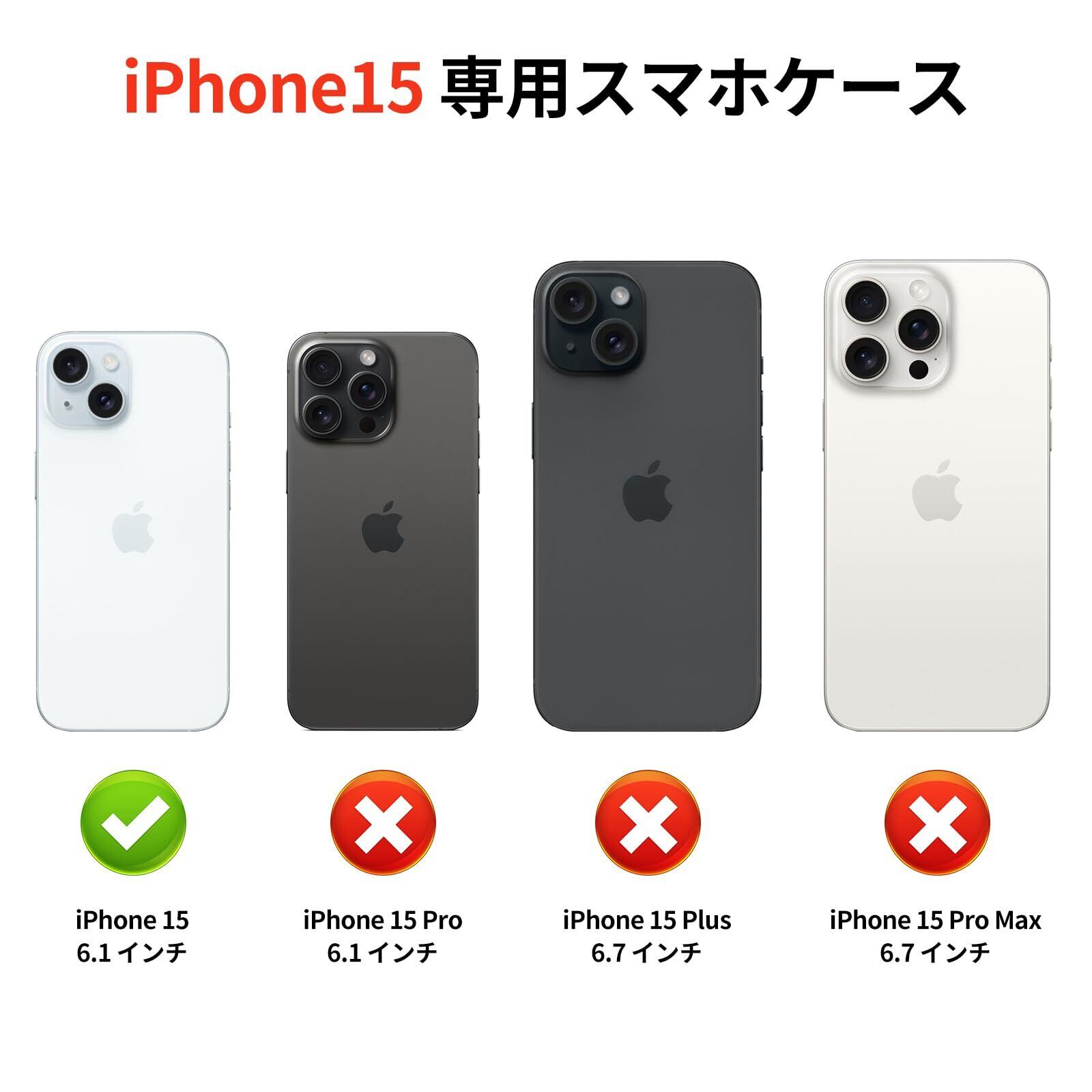 【対応機種】手帳型背面カード収納スマホケースはiPhone 15 (6.1インチ)にのみ対応しています。ご注意: iPhone 15 Plus(6.7インチ)、iPhone 15 Pro(6.1インチ)、iPhone 15 Pro Max(6.7インチ)には対応していません。