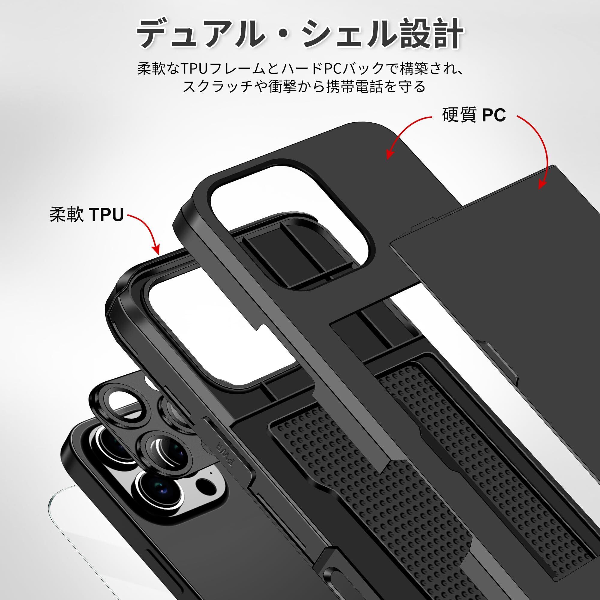 【全密閉式隠しカードホルダー設計】iPhone 16 プロ マックス 用保護カバーは2枚のカードを安全に保管することができる。財布を持ち出す必要がなく、身分証明書、クレジットカード、現金を簡単に持ち運ぶことができます。全閉鎖設計はカードの安全を確保する。