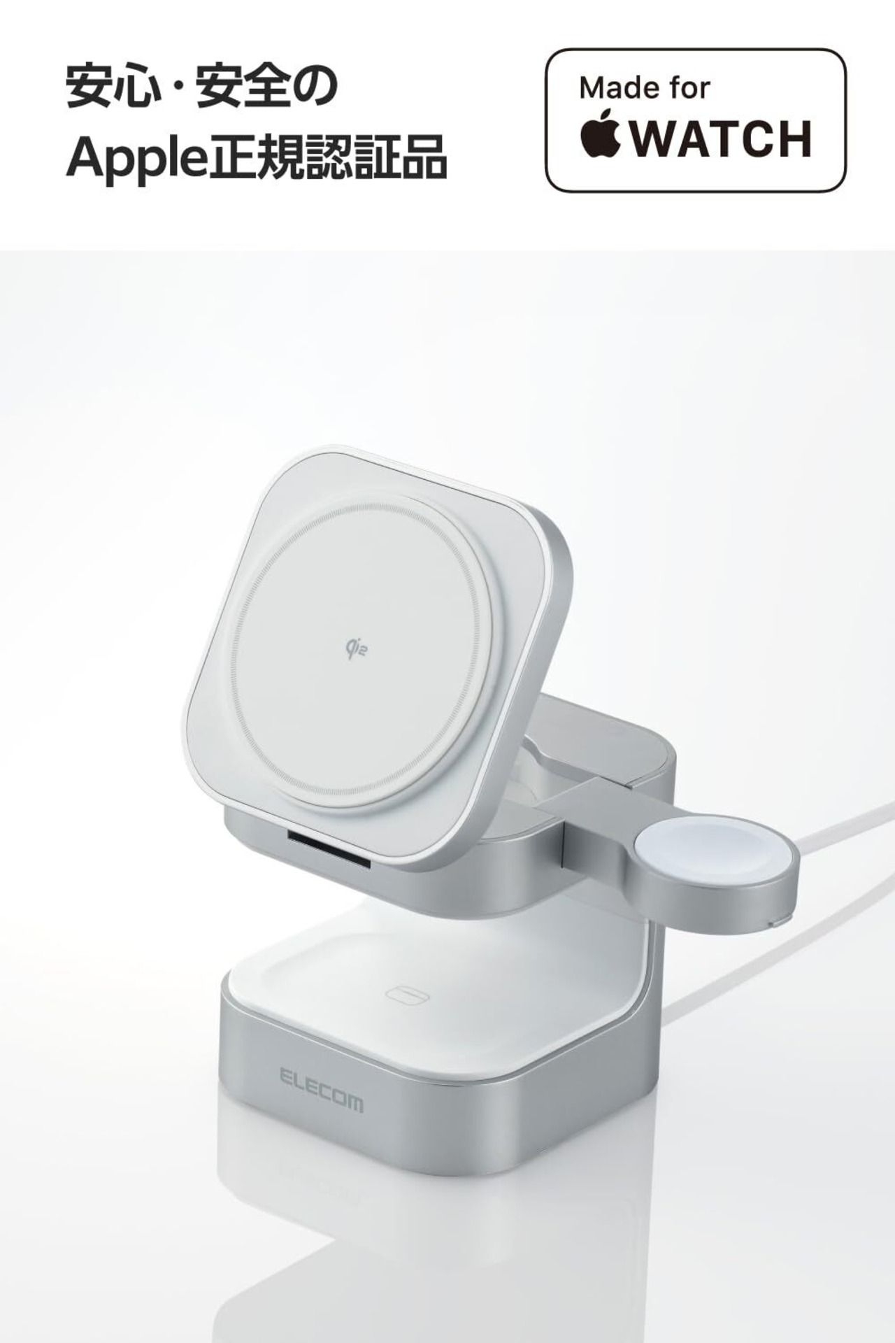 エレコム Qi2 充電器 ワイヤレス 15W 3in1 Apple Watch 認証モジュール付き スタンド型 シルバー EC-MS09SV