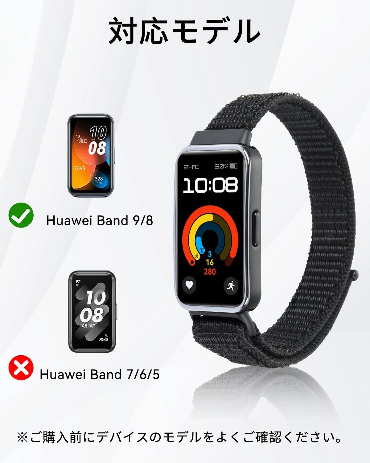 【For Huawei Band 9/8に適用】この交換用ストラップはファーウェイ Band 9/9NFC 8/8NFC用に特別に設計されており、他のモデルには適していませんので、ご購入前に製品モデルをご確認ください。サイズとインターフェイスは完全に一致しており、取り付けと分解が簡単です。 ※スマートブレスレット本体はパッケージに含まれておりませんのでご注意ください。