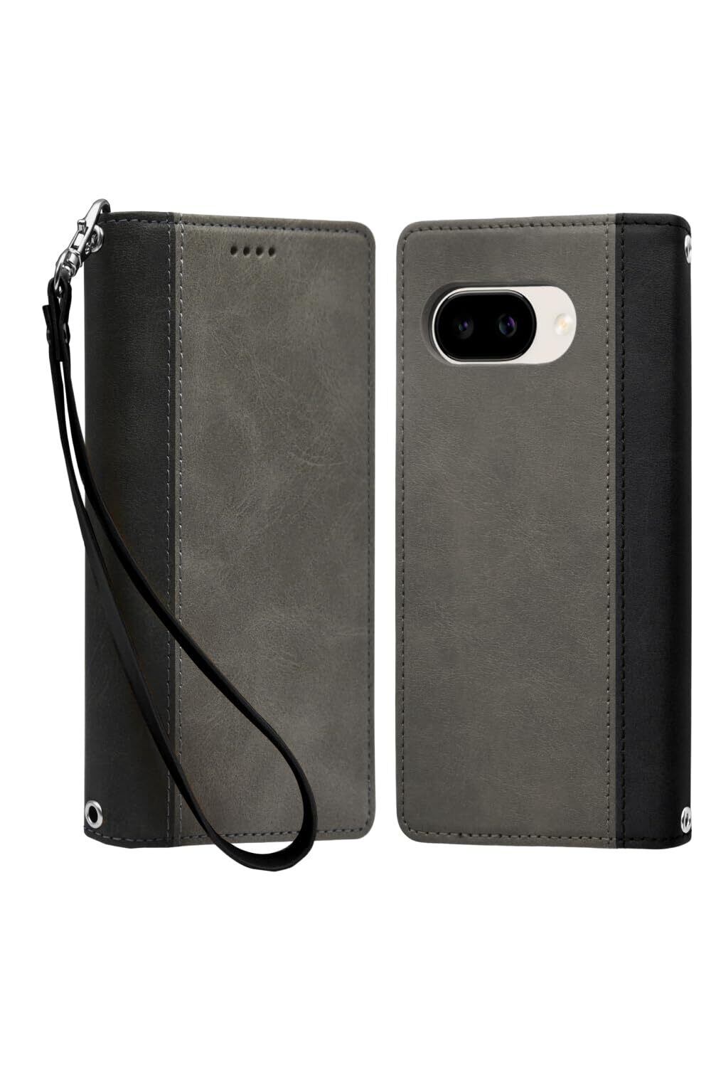 シズカウィル Google Pixel 9a ケース カバー 手帳型 本革調 レザーケース 1個入り グレー×ブラック