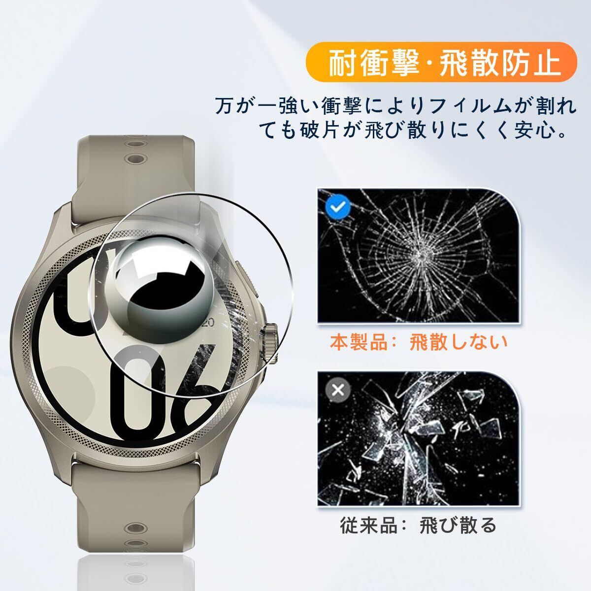 【9H強度&飛散防止】対応 Ticwatch Pro 5/Ticwatch pro5 Enduro 強化ガラス 保護フィルムは日本旭硝子素材を採用します。 落下、スクラッチ、衝突、衝撃に高い耐久性があります 衝撃を最小限に抑えて画面の破損を抑え。カッターなどの鋭利なものを当たってもキズが付きにくくて高い強度を持ち表面硬度9Hが特徴です。特殊な飛散防止設計により、万一割れてしまった際にも飛散することなく、高い安全性を実現します。