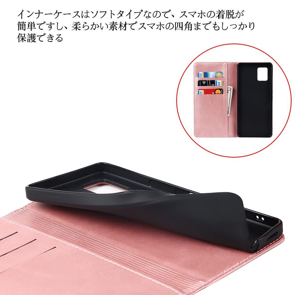 【機能性②】:内蔵マグネットの手帳型ケースです、留め具の邪魔無し、滑り防止の素材を採用され、とてもシンプルな感じで、しかも持ち易いて、使い勝手がよいのです。