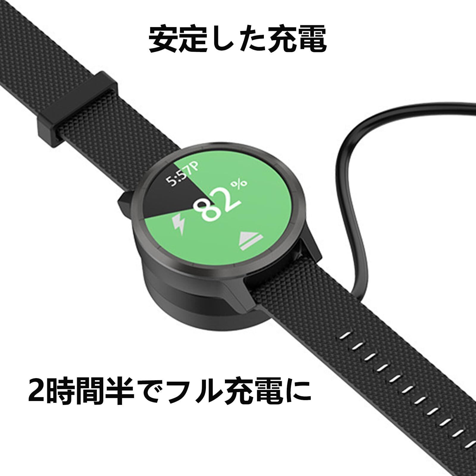 「取り扱い簡単」電源に接続し、ウォッチを充電位置に合わせてセットするだけで安定かつ安全に充電できます。約2時間半でフル充電できます。より安定した充電を行えるようにパソコンやPCのUSBポートで充電することをオススメ致します。