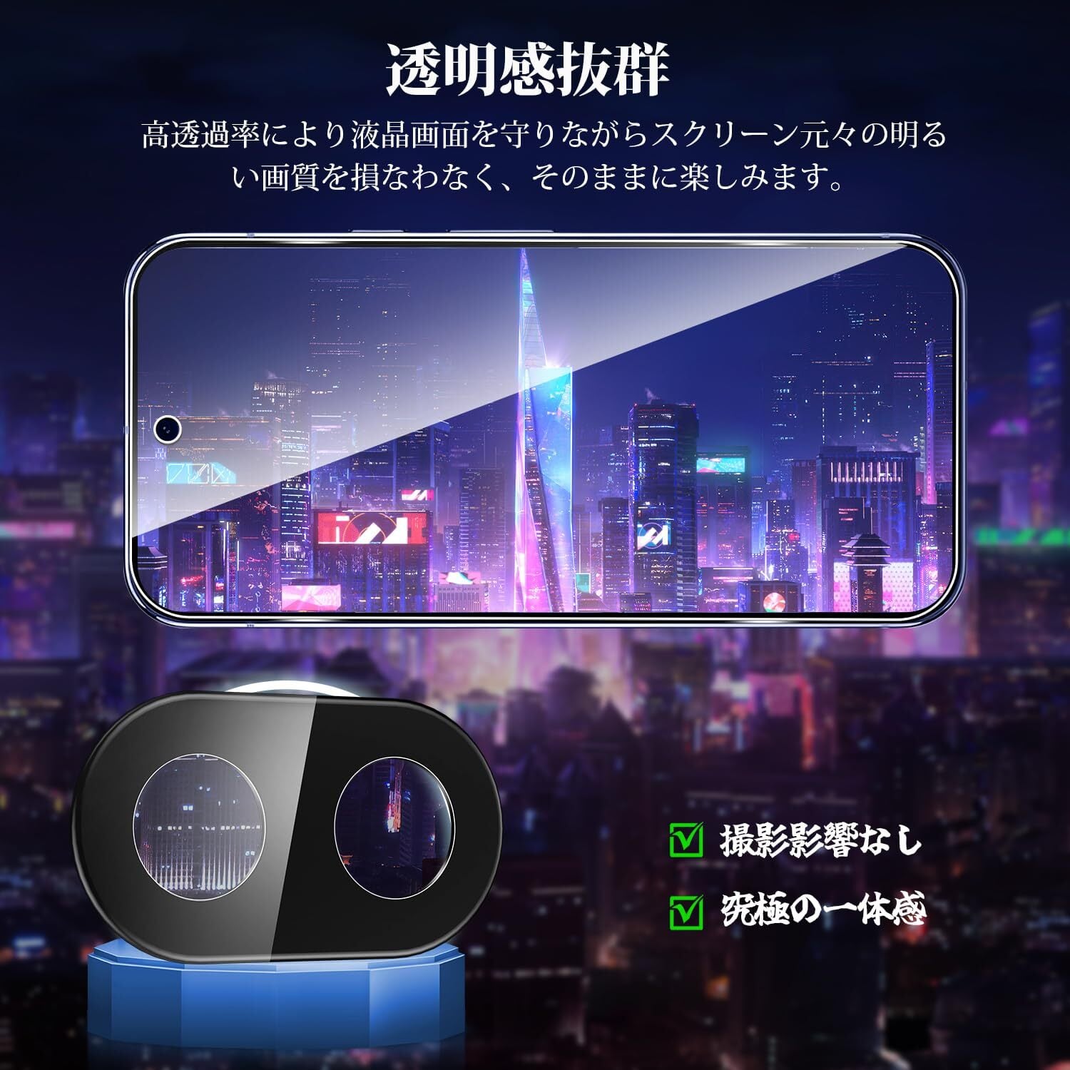 対応機種: Google Pixel 9a に対応します。画面保護フィルム2枚+レンズ保護フィルム2枚。