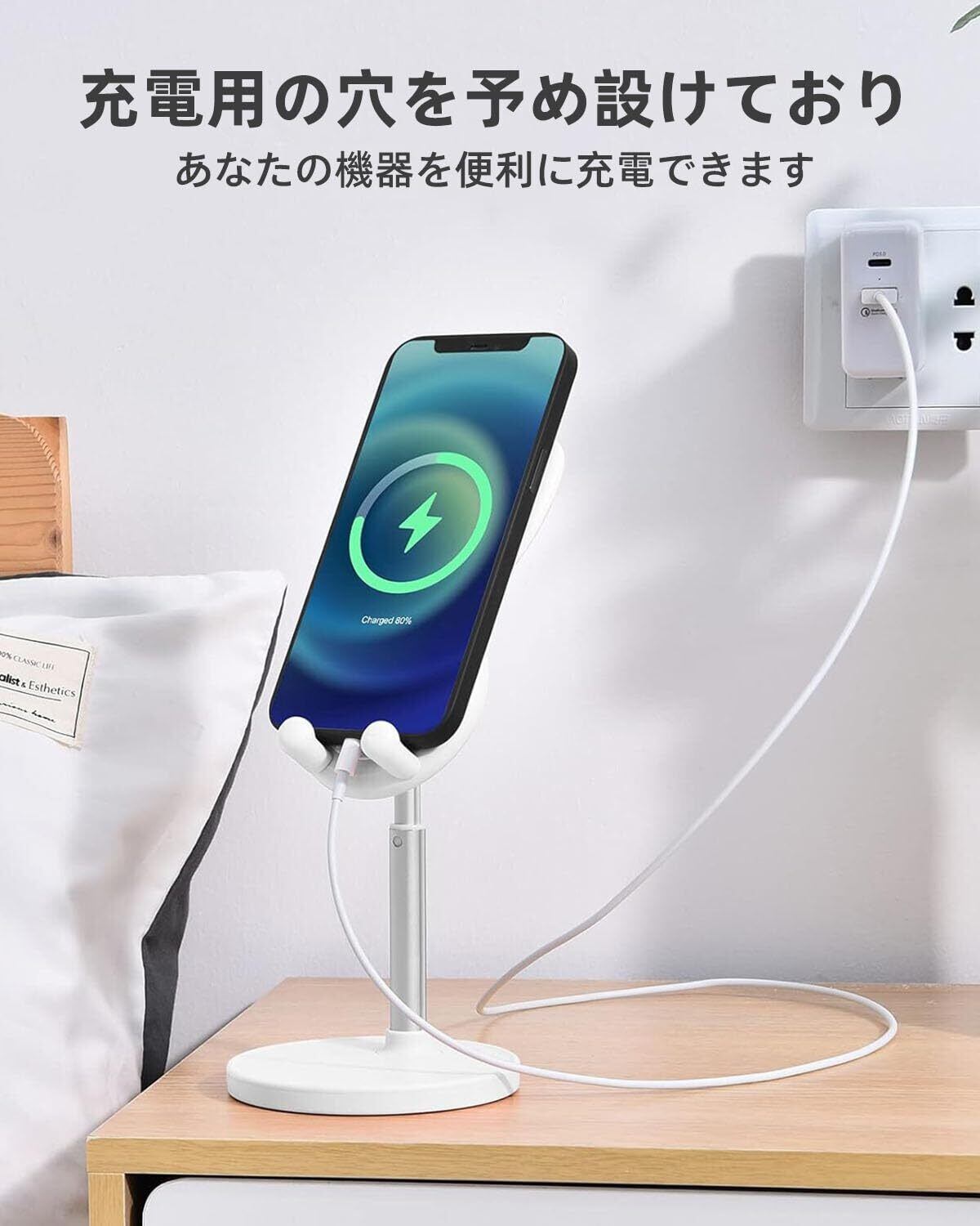 高さと角度が調節可能: 人間工学に基づいて設計されたウサギの携帯電話ホルダーです。 高さは18cm~26cm(8cm以内)、角度は0°~60°の範囲で調節でき、快適な視野角を提供し、姿勢を固定し、首や背中の疲れを軽減します。