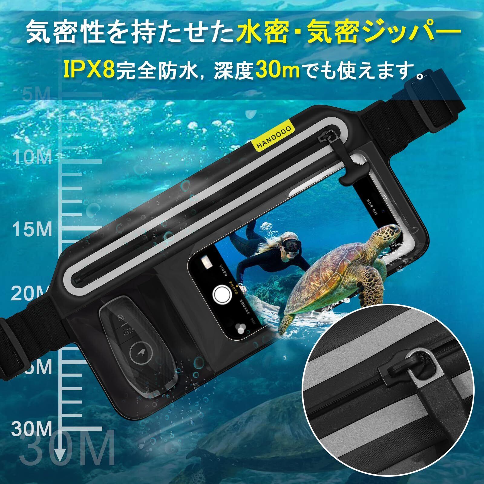 Handodo スマホ 防水ケース 防水ポーチIPX8完全防水 ウエストポーチ タッチ可能 指紋認証/顔認証対応 水中撮影 高透過率 長さ調整可能 iPhone/Android 7.0インチ以下全機種対応 海 プール 釣り 山登り お風呂 ハイキング アウトドアに活躍できる