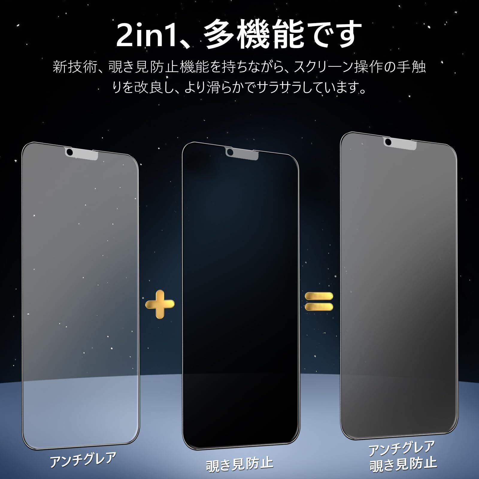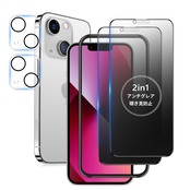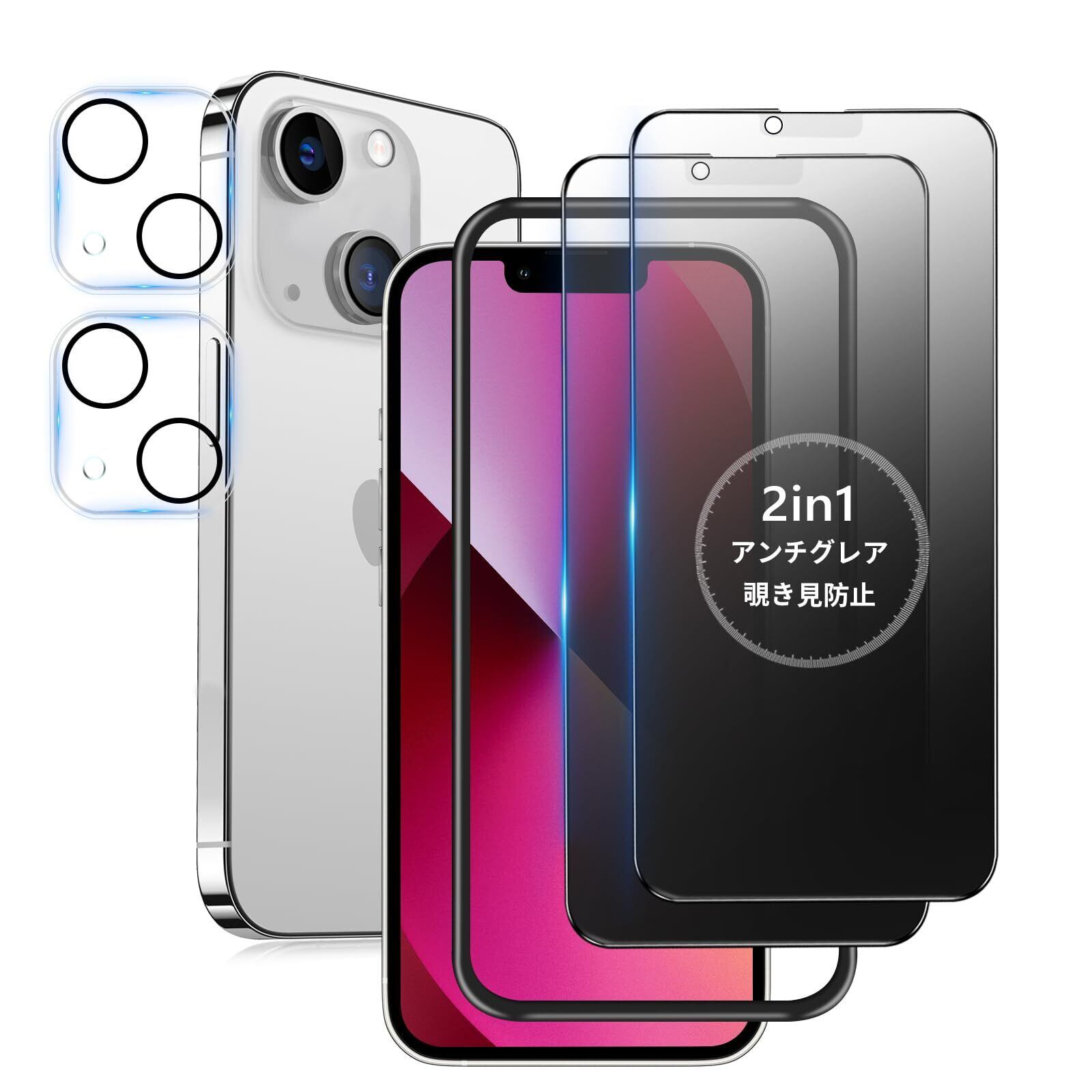 【覗き見防止 + アンチグレア / 2枚セット】 iPhone 13 Mini ガラスフィルム 覗き見 さらさら いPhone13Mini 保護フィルム サラサラ アイフォン13ミニ 覗き見防止フィルム 指紋防止 iPhone13Mini カメラフィルム 付き
