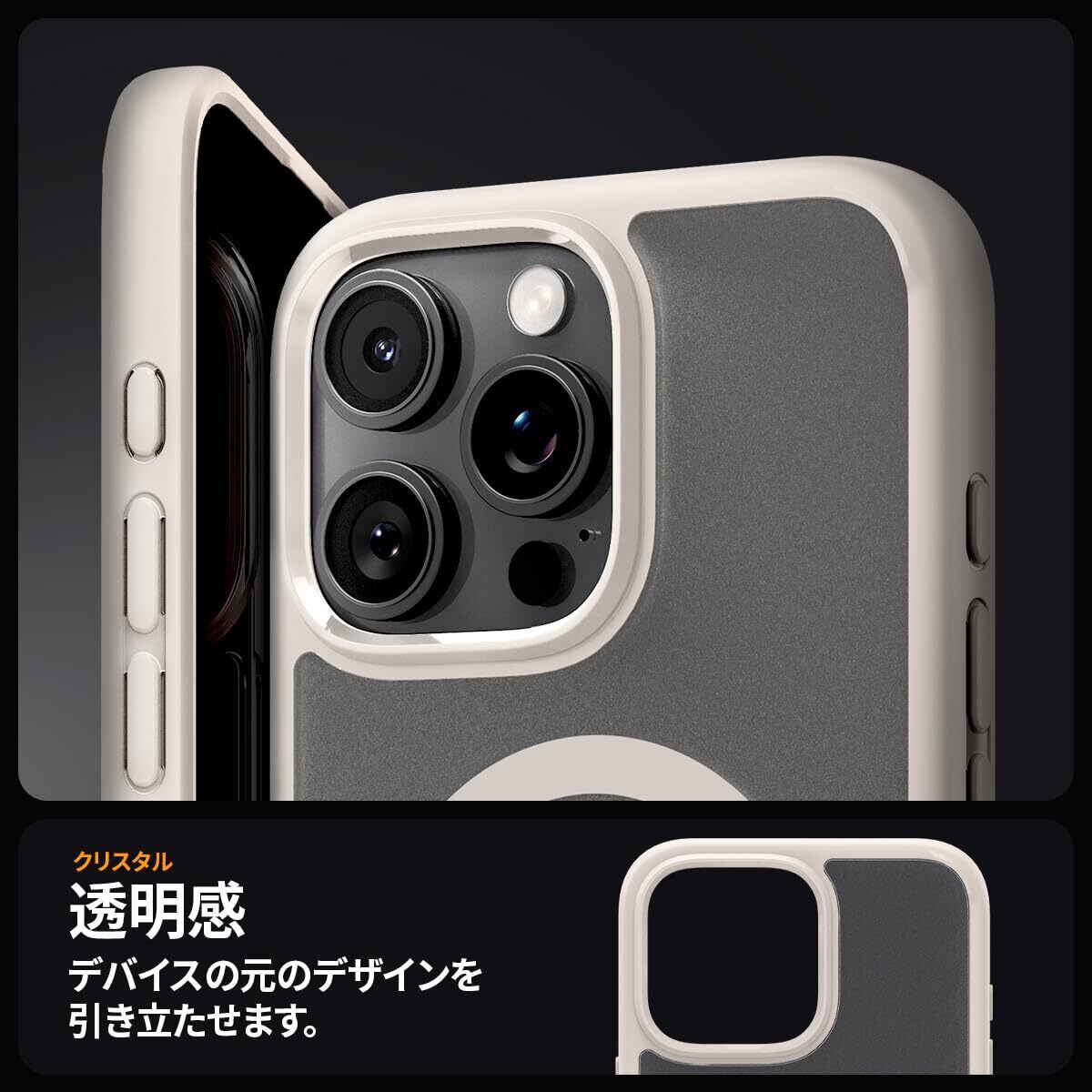 Spigen iPhone 16 Pro ケース MagSafe対応 半透明 クリア ストラップホール 米軍MIL規格 ウルトラ・ハイブリッド・マグフィット ACS08138 (フロスト・ナチュラル・チタニウム)