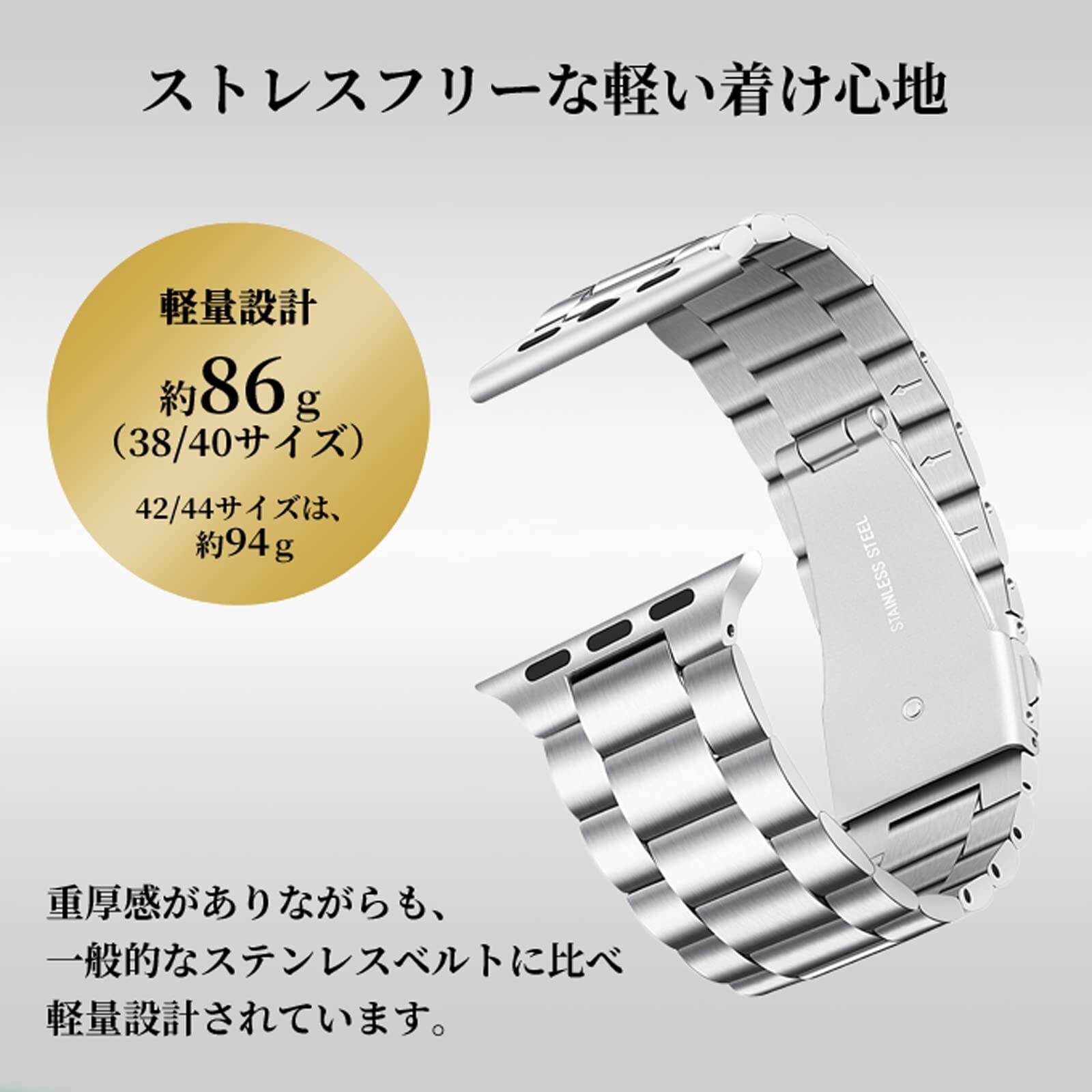 AriRi アップルウォッチ バンドはアップルウォッチ専用のステンレススチールの交換バンドです。従来の素材の約半分の軽さの軽量モデルなので毎日着用してもストレスなく着用することができます。
