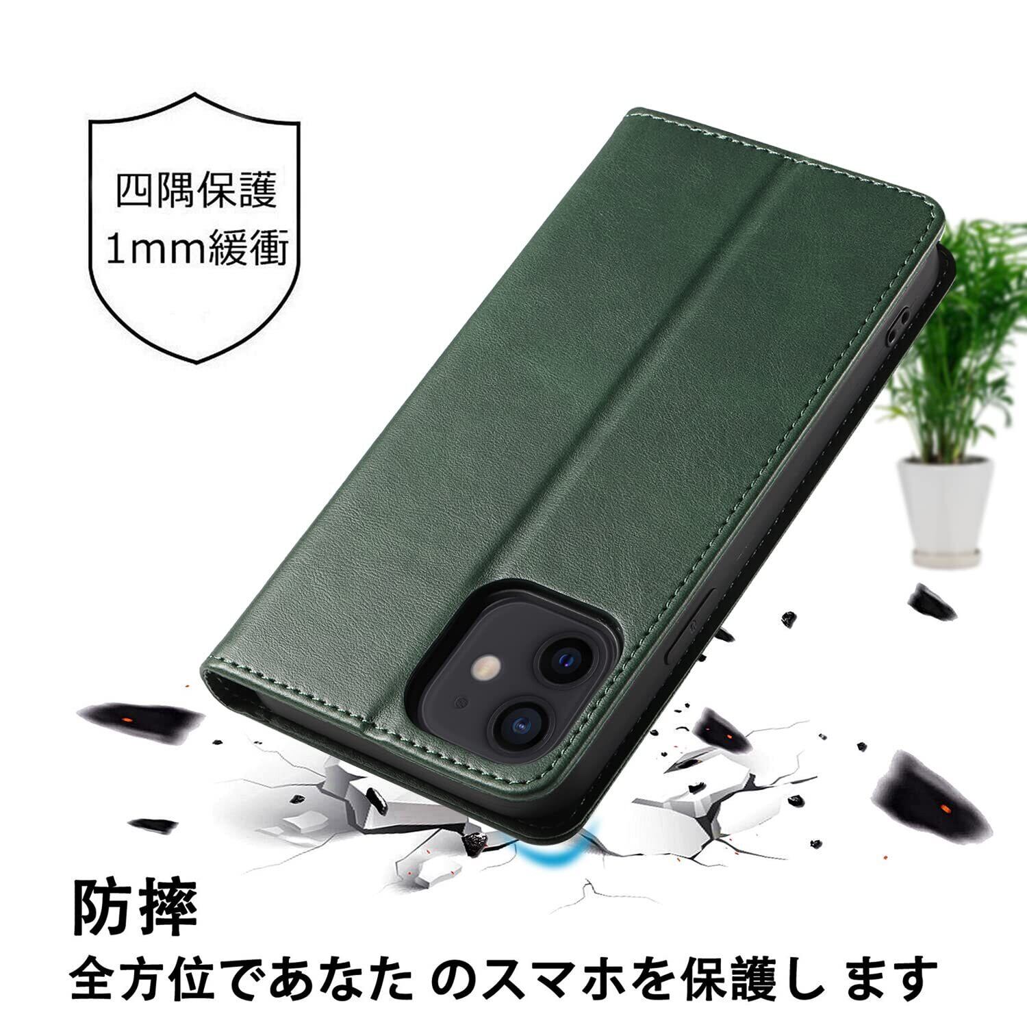 iPhone12 ケース iPhone 12 PRO ケース イフォン12/12 PRO スマホケース 手帳型 携帯カバー レザー 耐衝撃 軽量 着脱しやすい 放熱性 マグネット式 カード収納 スタンド機能360度保護 PinLiSheng (グリーン, iphone12/12pro)