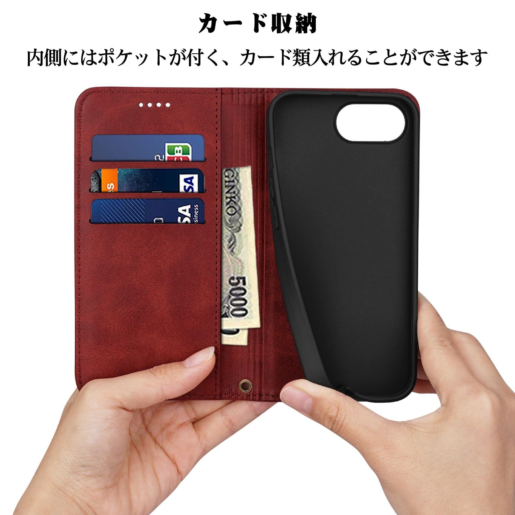 Rssviss iPhone 16e 用 ケース 手帳型 Qi対応 iPhone16e 専用 カバー 手帳型 ワイヤレス対応 アイフォン16e 用 ケース ワイヤレス充電対応 スタンド機能 カード収納 マグネット付き iPhone 16e(2025) 6.1 inch W1M レッド