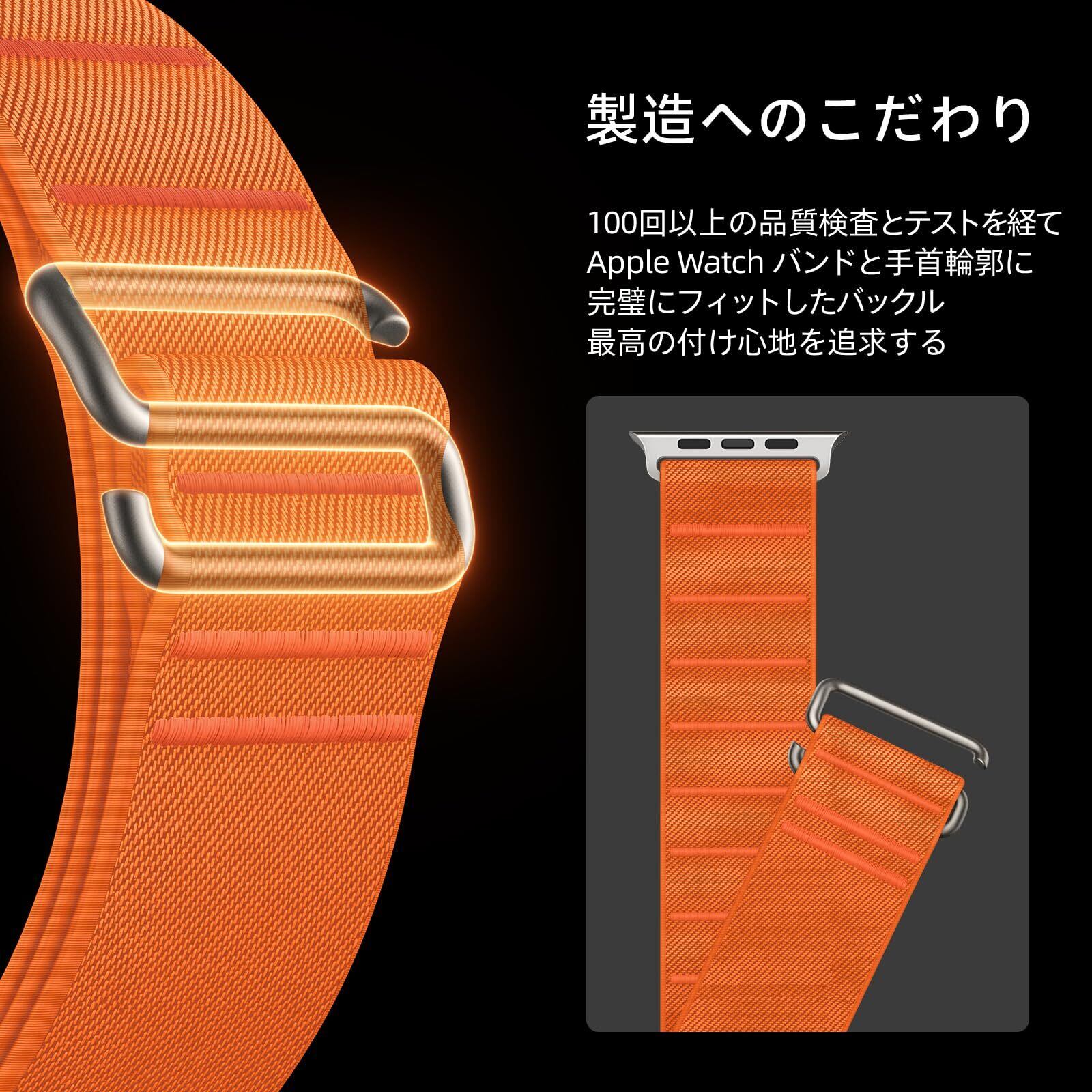 [Suitisbest] コンパチブル アップルウォッチ バンド ナイロン 49mm 46mm 45mm 44mm 42mm(Series 3 2 1) Apple Watch Ultra バンド スポーツ Apple Watch ベルト 通気 アルパインループ Series 10/9/8/7/SE/6/5/4/3/2/1 ウルトラ 運動 軽量 耐久性 防汗 男性 メンズ オレンジ