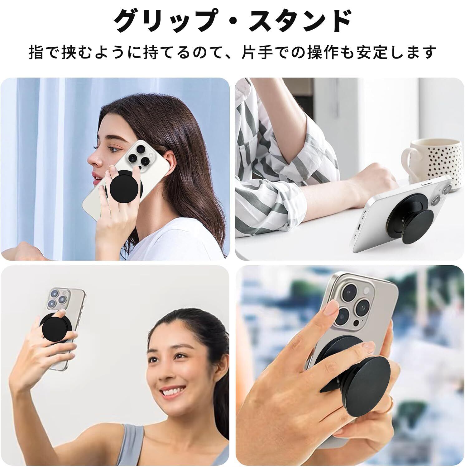 Magsafe対応 スマホグリップスタンド スマートフォンホルダー スマホグリップ 強力磁力 片手操作便利 脱着簡単 落下防止 iPhone Google Galaxy android に対応 磁気スタンド (ブラック)