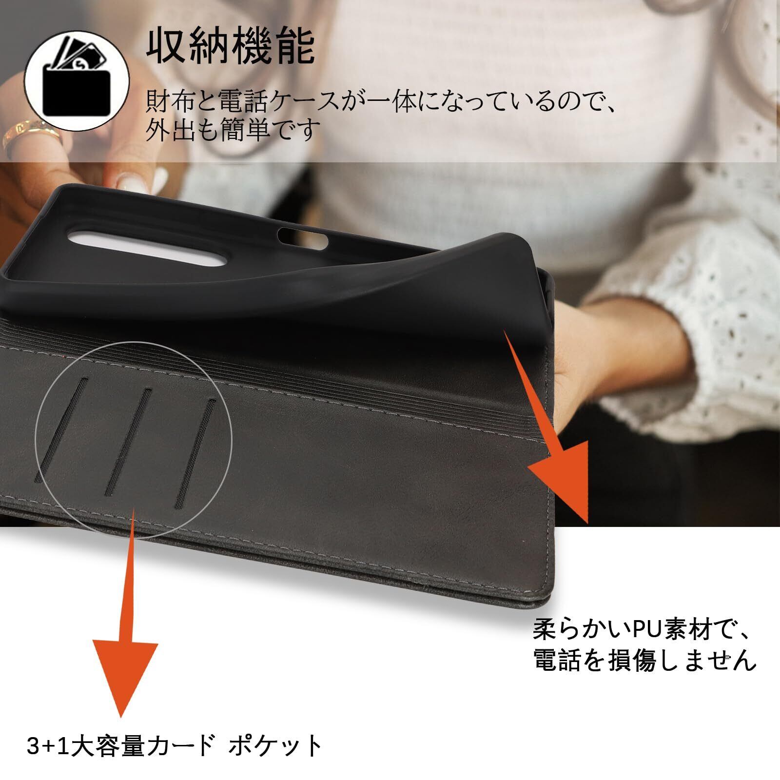 【高級皮革】高品質のPUと柔軟なTPUカバーと組み合わせ、軽量で耐衝撃性に優れ、変形しにくくまた、取り外しが簡単で、スマホ本体への損傷の心配ありません。