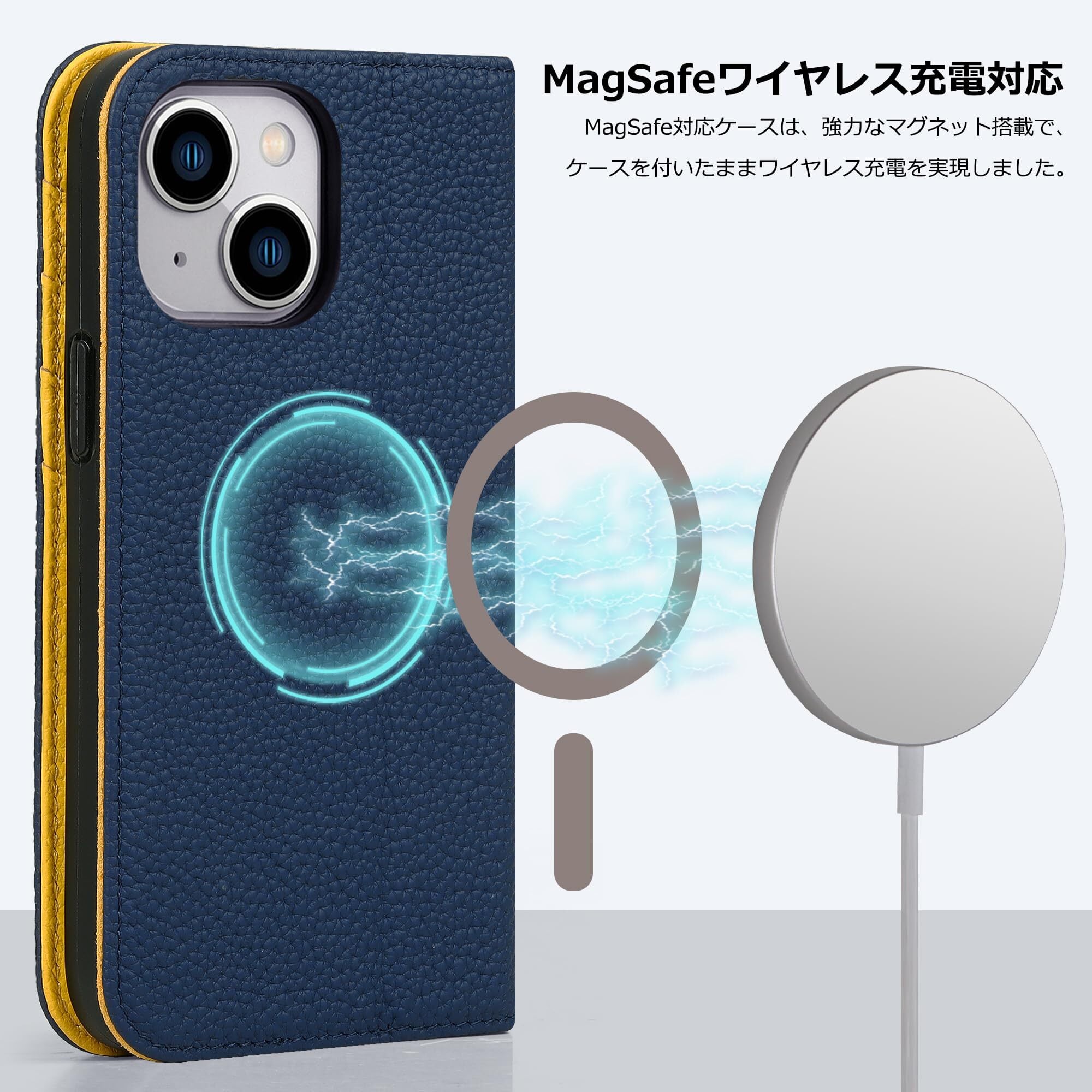 【特価商品】VISOUL iPhone15 ケース 手帳型 本革 アイフォン15 手帳ケー MagSafe対応 レザー カード収納 携帯ケース 全面保護 柔軟なTPU素材 マグネット式 スタンド機能付き スマホケース iphone 15 対応 6.1インチ アイホン 15 ネイビー レモン | impsmile