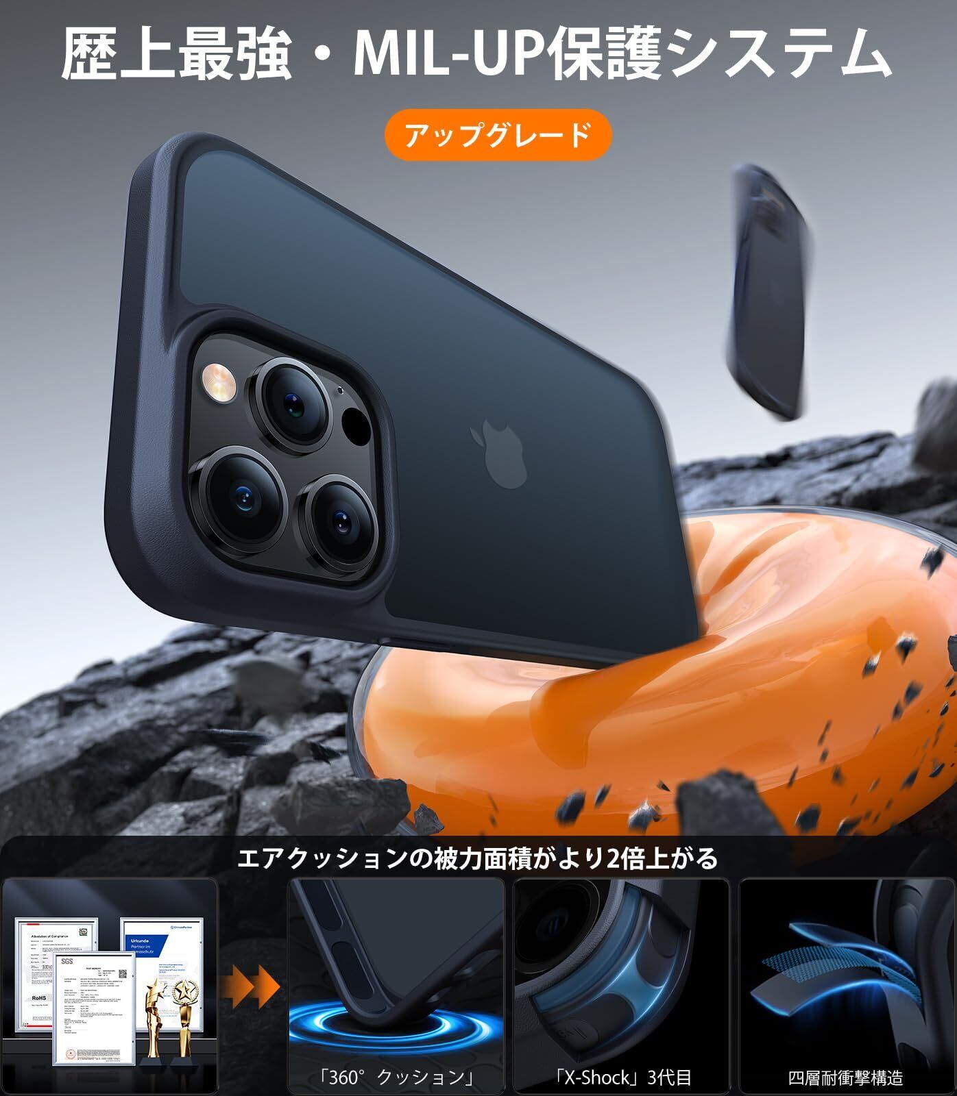 【特価セール】【米軍耐衝撃・無黄変】TORRAS iPhone14Pro 用 ケース 米軍規格 2.24M落下認証 半透明 黄ばみなし 指紋防止 マット感 ストラップホール付き レンズ保護 アイフォン14Pro 用 カバー ブラック Guardian | impsmile