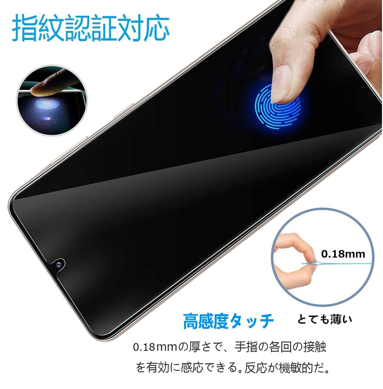 【超薄型·高感度タッチ·指紋認証対応】 Galaxy S21 5G に特製ガラス保護フィルムとカメラフィルムです。高耐久性防汚のフィルムに特殊コーティングにより指紋や汚れが付きにくくなっています。超薄型保護フィルムは鮮明な99%の高透過率、自然な見た目です。Galaxy S21ガラス縁をラウンド加工することにより滑らかな手触りを実現。3Dラウンドエッジ加工により、横からの衝撃を受け難くします。厚さ0.18mm、何も貼っていないような感じ、手触り感が優れており画面の美しさをお楽しみいただけます。擦り傷防止の透明なカバーで本体の美しさを妨げません、本体とピッタリ密着して違和感がない一体感がすごく格好いいです。液晶保護ガラスフィルムは高品質な専用接着剤を採用し,0.01 mmの超音波フィルムを採用しており、装着後に指紋を再入力することで、完璧な指紋ロックを実現します。取り付け後の指紋の位置に気泡がないように注意してください。