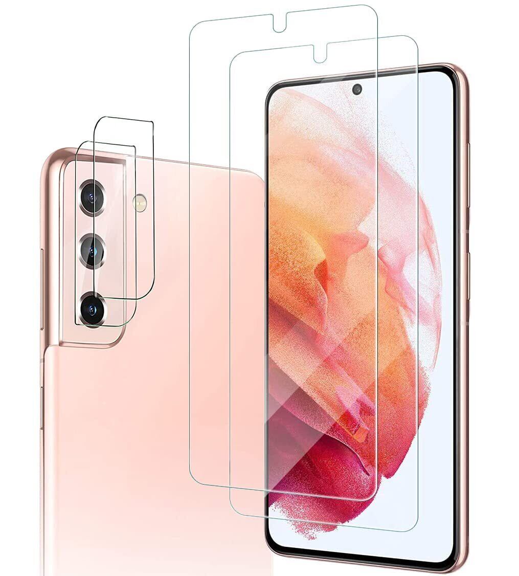 【2022進化·指紋認証対応 · 2+2 セット】For Galaxy S21 5G ガラスフィルム(2枚入り)+カメラフィルム(2枚入り)Kakuki Galaxy S21 レンズ保護フィルム 全面保護フィルム 硬度9H 高透過率 飛散防止 強化ガラス 耐衝撃 液晶保護フィルム 指紋防止 気泡ゼロ 自動吸着 貼り付け簡単 galaxy S21 [SC-51B | SCG09] 対応