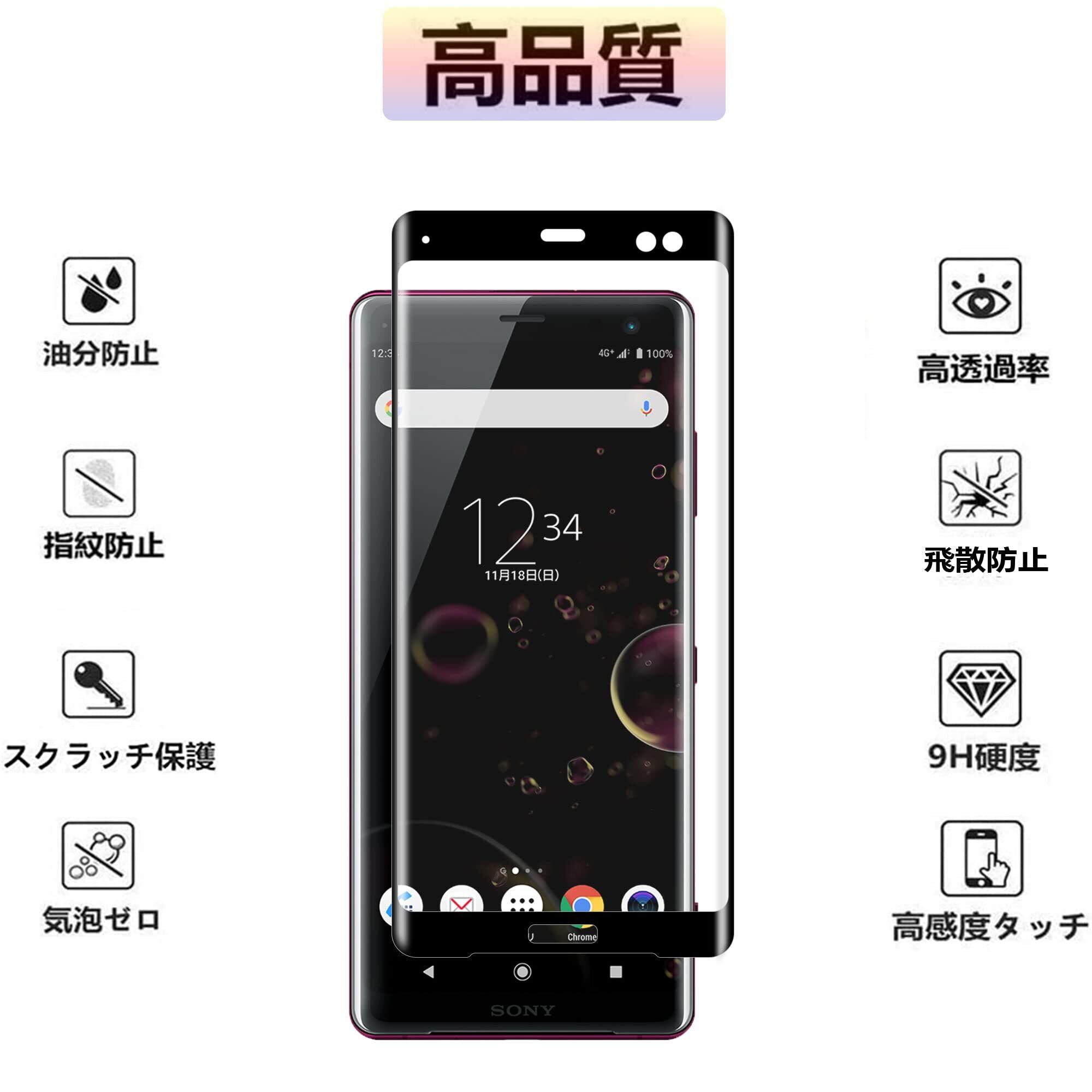 【特価セール】Nutmeg【2枚入り】Sony Xperia XZ3 用の ガラスフィルム SO-01L SOV39 801SO フィルム 日本旭硝子素材 強化ガラス エクスペリア XZ3 保護フィルム【本体の湾曲する端まで貼れる/干渉しない/気泡ゼロ/指紋防止 ブラック】 | impsmile