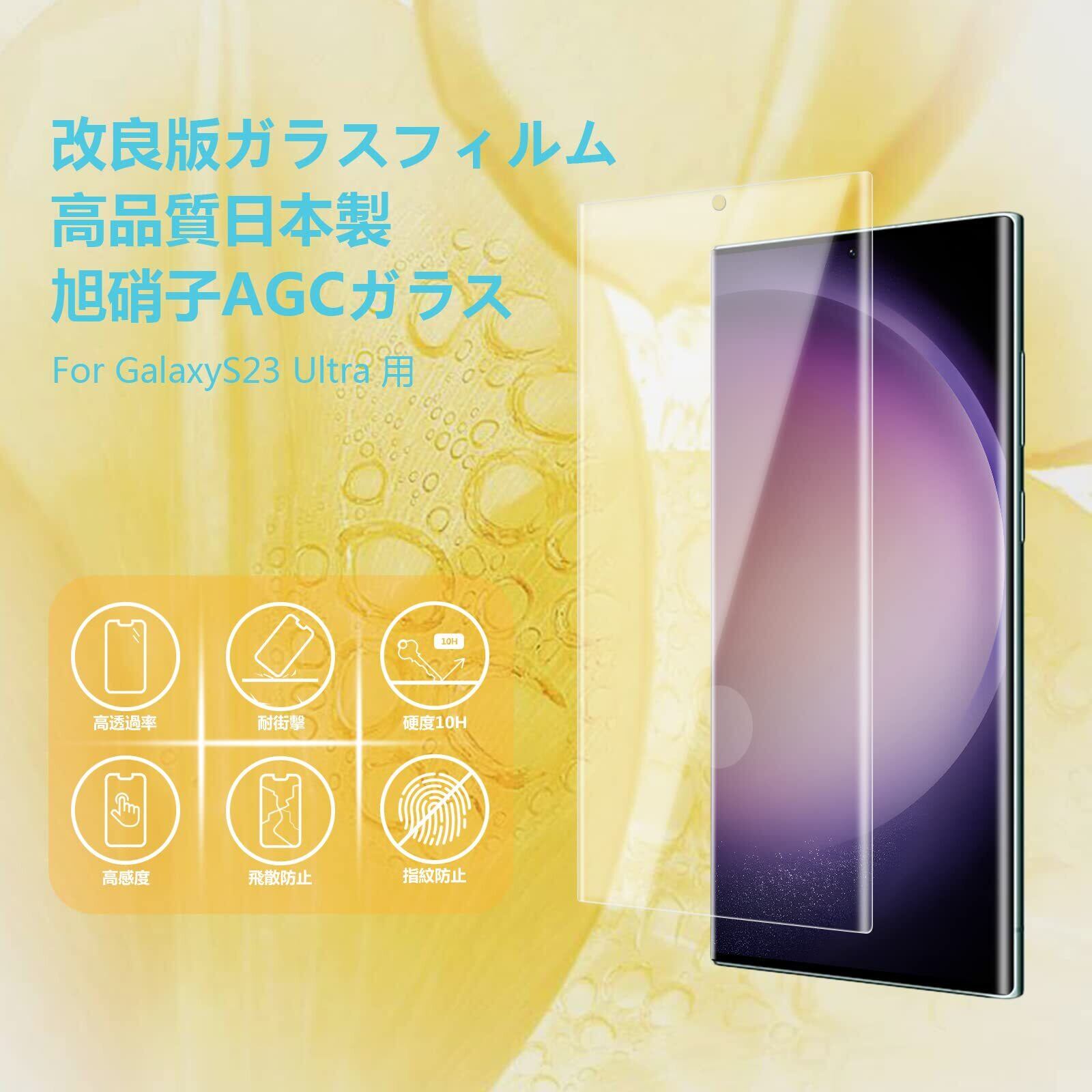 【秒で貼り付け、強力な粘着力】Galaxy S23 Ultraの液晶面にぴったり貼り付けてタッチ感度が良好です。ガラスフィルムと違って、ACG素材でスマホの湾曲まで覆える全面保護フィルムです。貼付け位置を正確に確定できたら、指で真ん中から端に向かって軽く押すだけで、気泡もなく綺麗に仕上げることができます。強力吸着タイプで気泡に悩まされることなく、より簡単に、より綺麗に液晶保護フィルムを取り付けることができ。ます