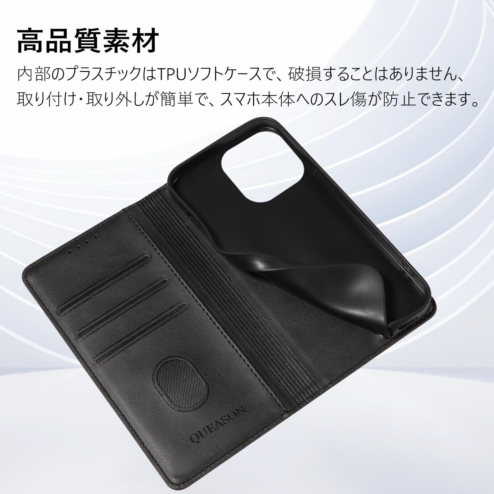 QUEASON 互換品 スマホケース【iPhone 14 ケース 手帳型】iphone14 ケース 携帯ケース いphone14 ケース 手帳型 スタンド機能 アイフォン14 ケース 手帳型 アイホン14ケース 手帳型 薄型ケース カード収納 落下防止 マグネット式 耐衝撃 肌触り良い 全面保護 防塵(ブラック)