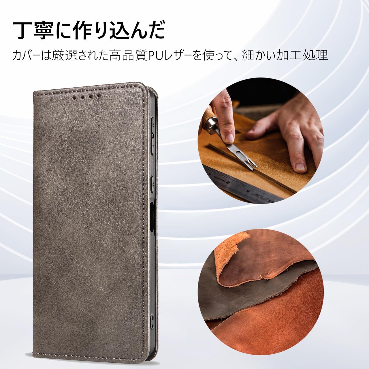 QUEASON【AQUOS Sense9 用 ケース 手帳型】マグネット式 アクオスセンス9 ケース 手帳型 SH-53E SHG14 SH-M29 スタンド機能 アクオスセンス9 カバー カード収納 aquos sense9ケース 携帯カバー アクオスセンス9ケース 耐衝撃 落下防止 防塵(グレー)