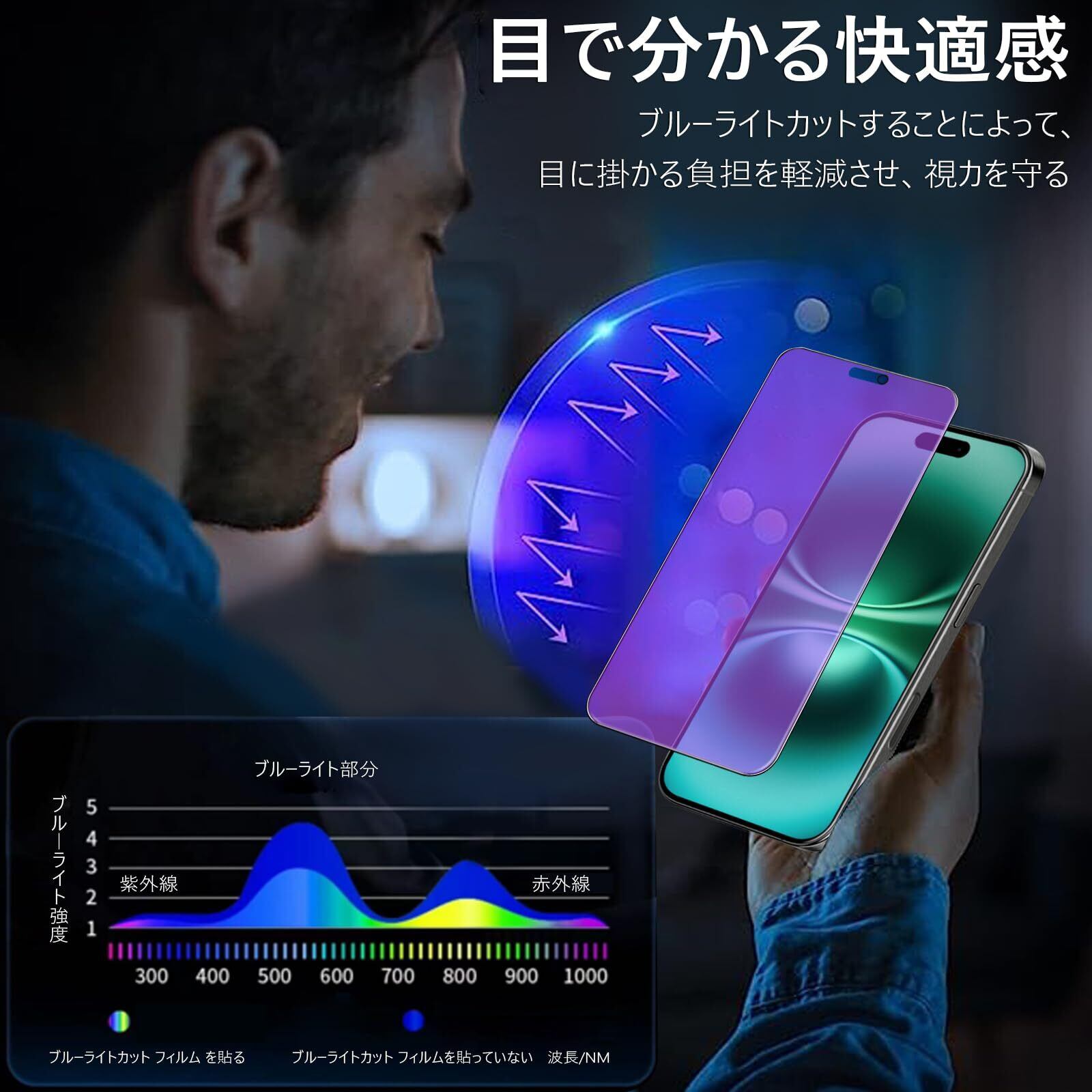 【ブルーライトカット + アンチグレア/2枚セット】 iPhone 16 ガラスフィルム ブルーライト さらさら いPhone16 保護フィルム ブルーライトカット サラサラ アイフォン16 強化ガラス フィルム 指紋防止 画面フィルム 反射防止 iPhone16 カメラフィルム 付き