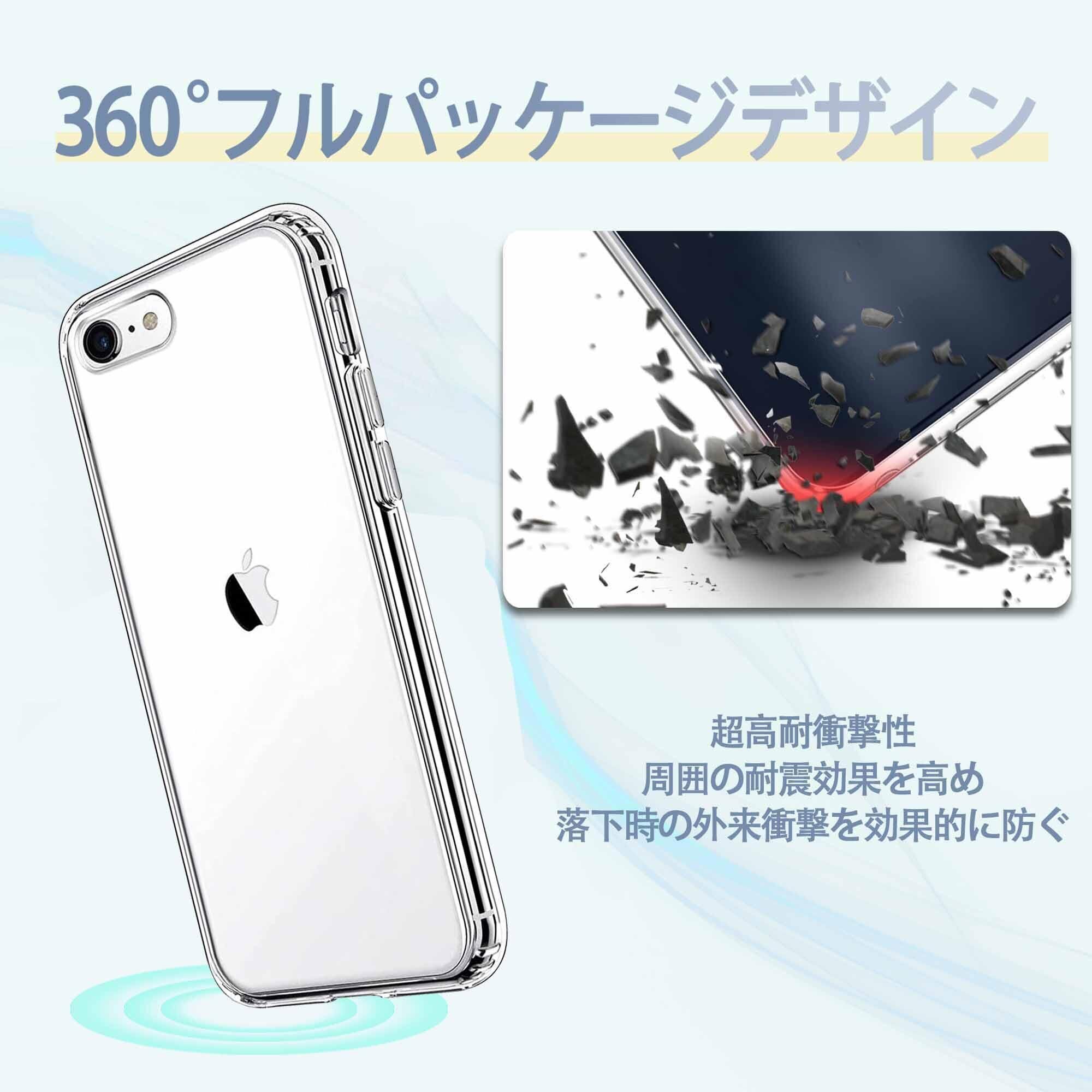 WHskyee iPhone SE 第3世代 / iPhone SE2 ケース + ガラスフィルム iPhone8 / iPhone7 クリア カバー TPU ソフトケース 人気 保護カバー(全透明) 高透過率 薄と 軽い量【米軍MIL規格 耐衝撃 落下防止 傷防止 汚れ防止 黄変防止】日本旭硝子素材採用 高透過率 硬度9H 強化ガラス 撥油性 防指紋 飛散防止 iPhone SE 第3世代