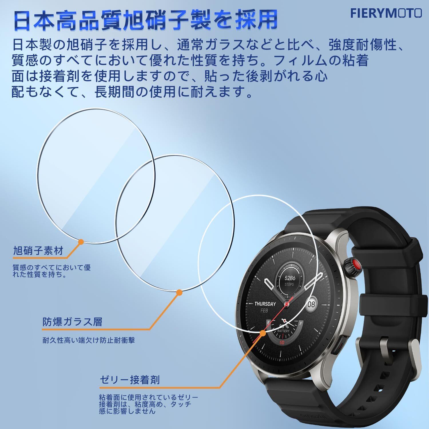 【3枚セット 日本旭硝子製】 用 Amazfit GTR4 ガラスフィルム 3枚 用 Amazfit GTR4 フィルム 用 Amazfit GTR4 強化ガラス 保護フィルム カバー ケース 9H硬度 全面保護 耐衝撃 飛散防止 高透過率 超薄型 指紋認証対応 自動吸着 貼り付け簡単 気泡防止 指紋防止