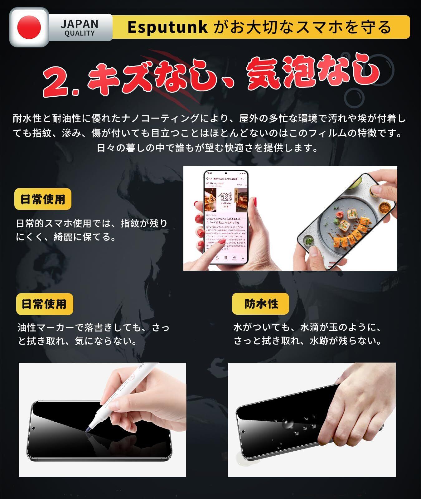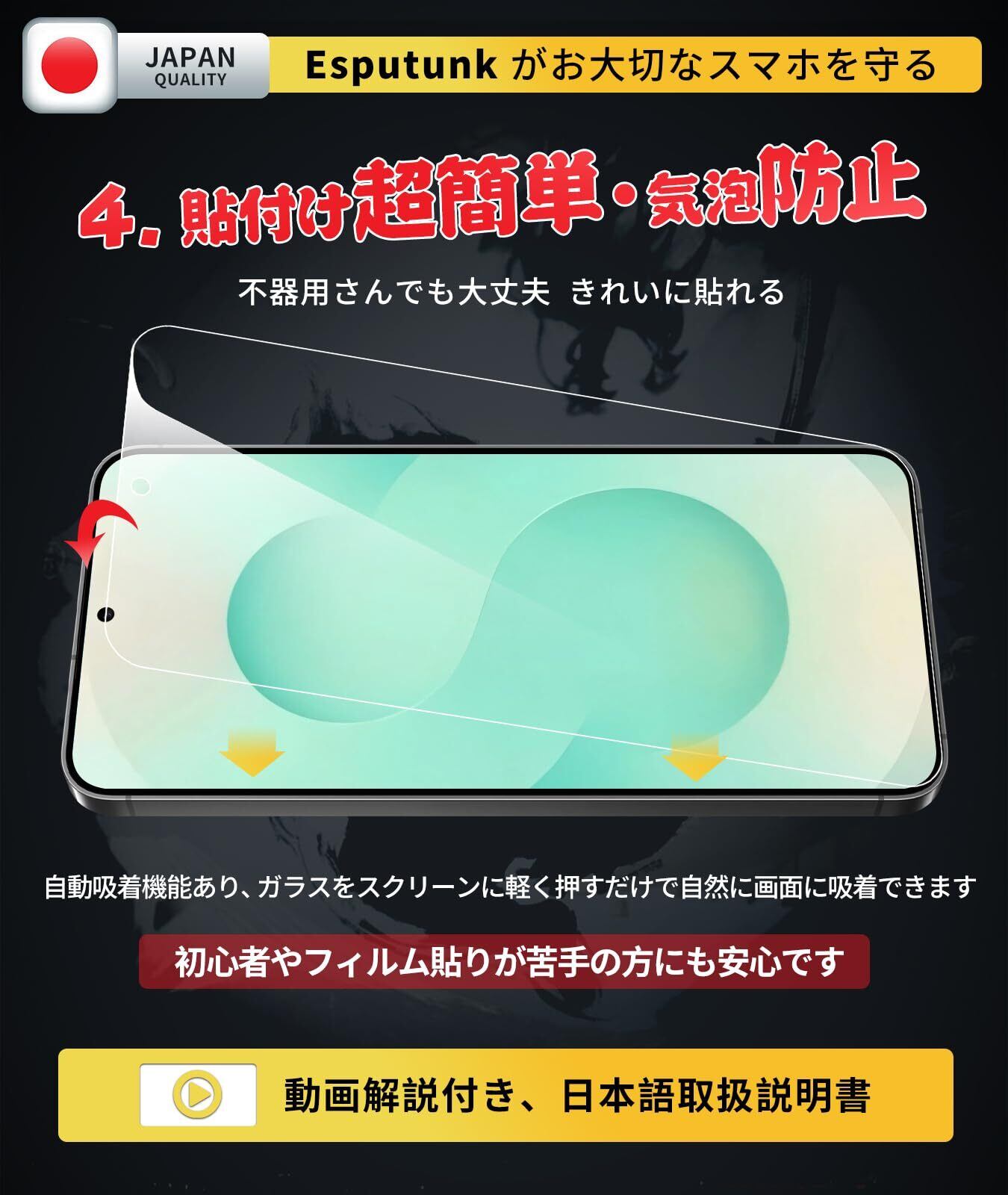 【指紋防止・撥水撥油!貼り付け失敗はゼロ】:指紋や汚れに対する特殊ドコーティング済み、普通のガラスより指紋が残りにくく、疎油層と組み合わせ、いつでも美しい画面で滑らかで快適な操作ができます。グレードアップしたイオン自働吸着技術を採用して、初心者でもたった3ステップ、10秒で簡単に綺麗で貼り付けることができます!失敗の発生を防ぐことができて、ご心配を完全に解消します!