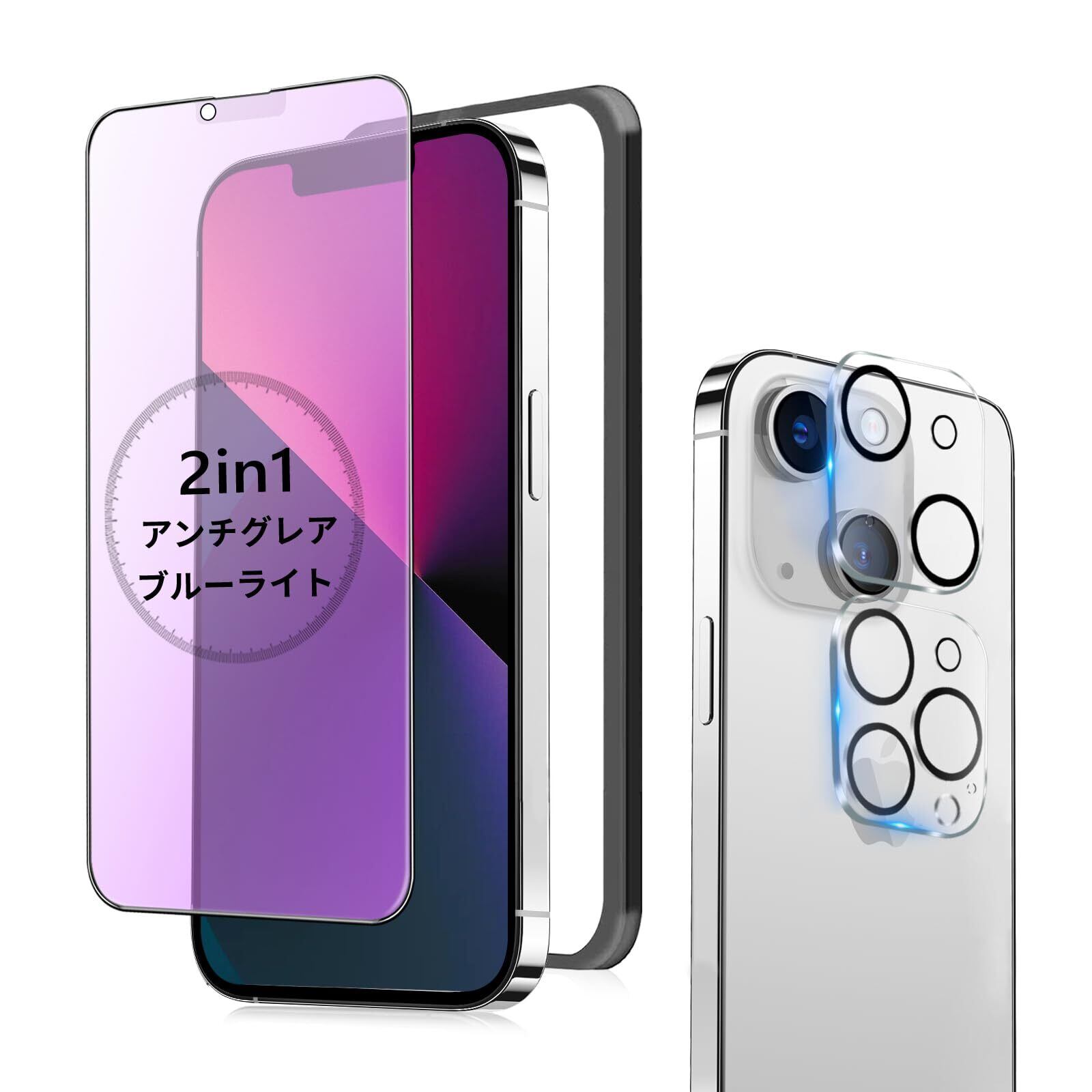【アンチグレア + ブルーライトカット】 iPhone 13 Pro ガラスフィルム アンチグレア ブルーライト iPhone13 保護フィルム さらさら アイフォン13プロ フィルム サラサラ 指紋防止 いPhone 13 Pro 用 強化ガラス 画面フィルム 反射防止 iPhone13/13Pro カメラフィルム 付き