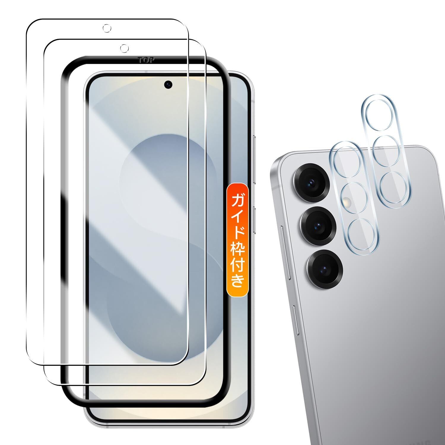 用 galaxy s25 ガラスフィルム 2枚+ カメラフィルム 2枚【2+2枚セット 日本旭硝子製 ガイド枠付き】 用 galaxy s25 フィルム 液晶保護フィルム 用 ギャラクシー s25 強化ガラス レンズ保護フィルム ケース カバー 9H硬度 全面保護 耐衝撃 飛散防止 高透過率 超薄型 指紋認証対応 自動吸着 (For galaxy s25)