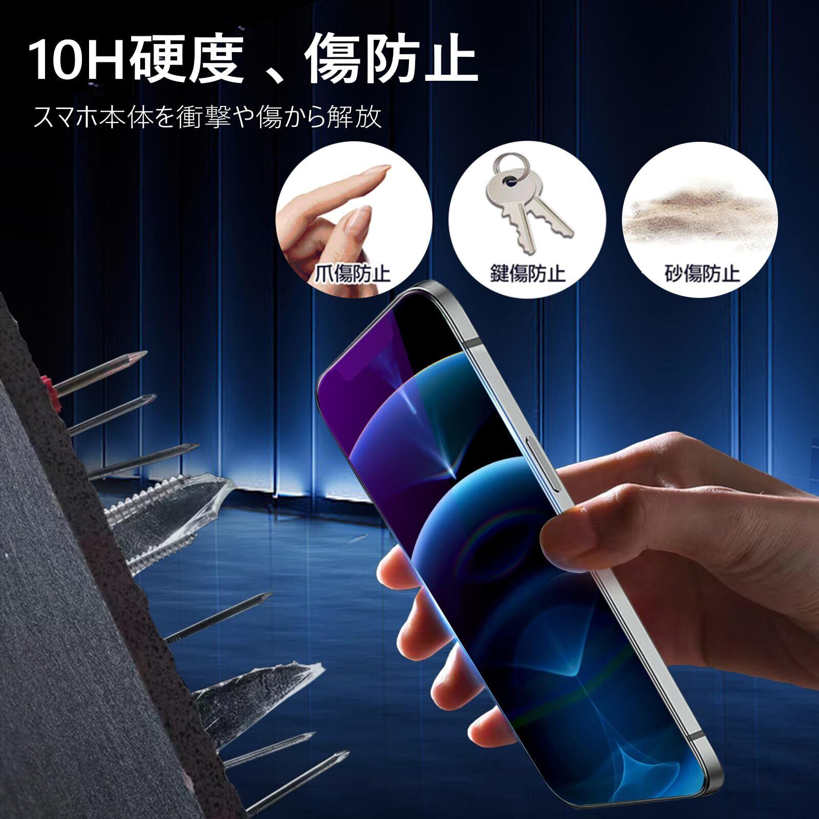 【10H硬度・高品質素材】 iPhone12Promax ガラスフィルム、10H硬度ガラスを採用し、ハードコーティング技術により外部からの衝撃を吸収し、画面へのダメージを可能な限り抑えます、スクラッチ防止。【製品の特徴】 全面保護/気泡なし/耐衝撃/剥がれない/綺麗/飛散防止。