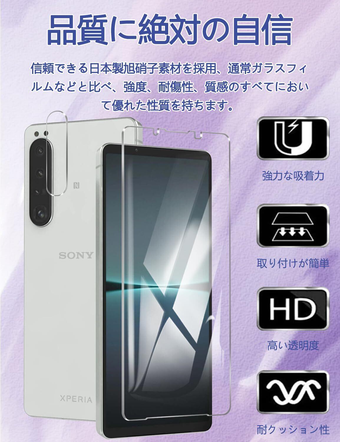 Xperia1 IV ガラス保護フィルム- 旭硝子仕様 SO-51C SOG06 ガラスフィルム 2枚 +Xperia1 IV フィルムカメラ 2枚 エクスペリア1 IV 用の ガラスフィルム 硬度9H 高 透過率 耐衝撃 飛散防止 傷防止 耐指紋 気泡ゼロ 撥油性 自動吸着