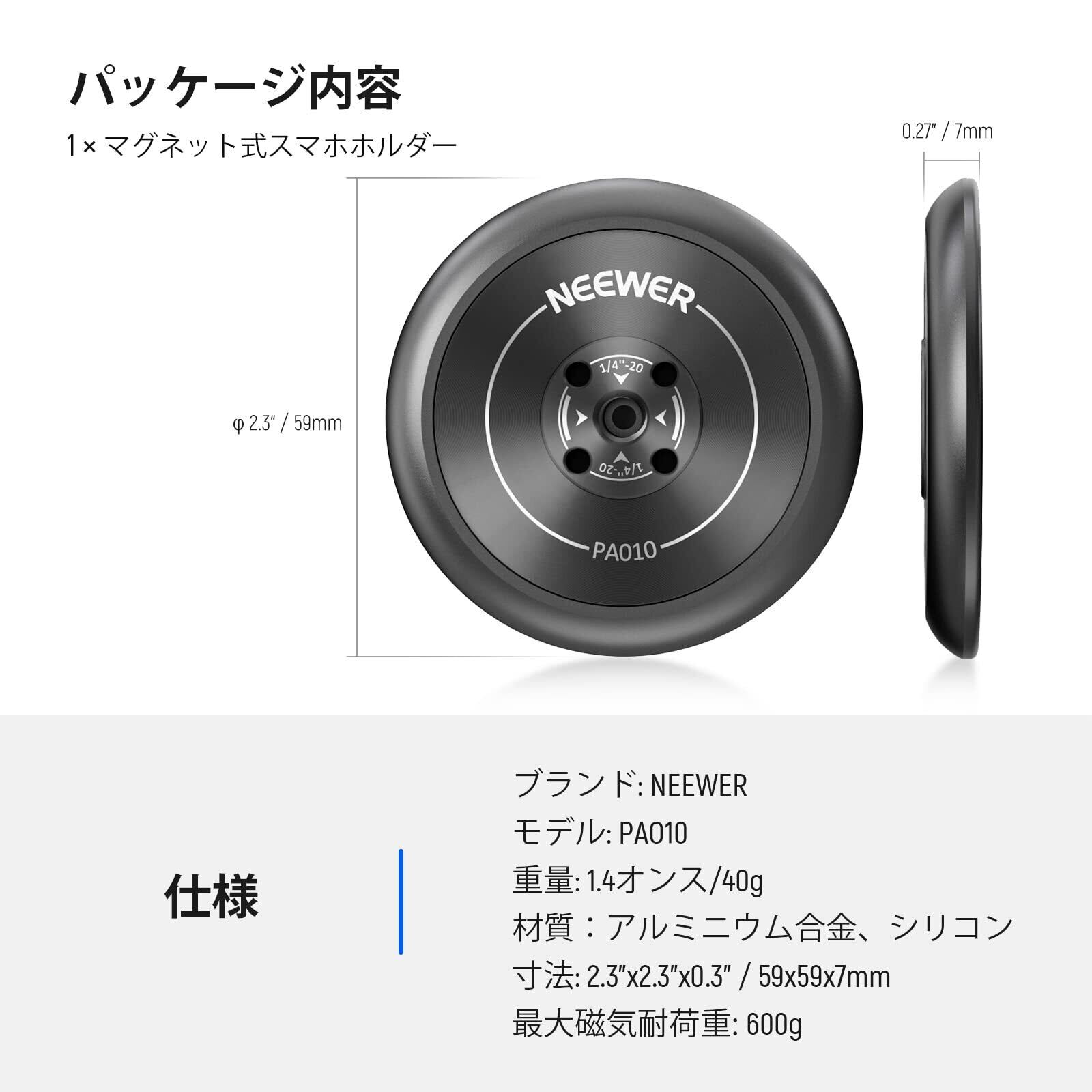 NEEWER マグネット式スマホ三脚マウントアダプター 1/4"ネジ穴 iPhoneに対応 MagSafeに対応 15 Pro Max/Plus 14 13 12 Max/Miniに対応 スマホホルダー リングライトビデオ録画用 PA010