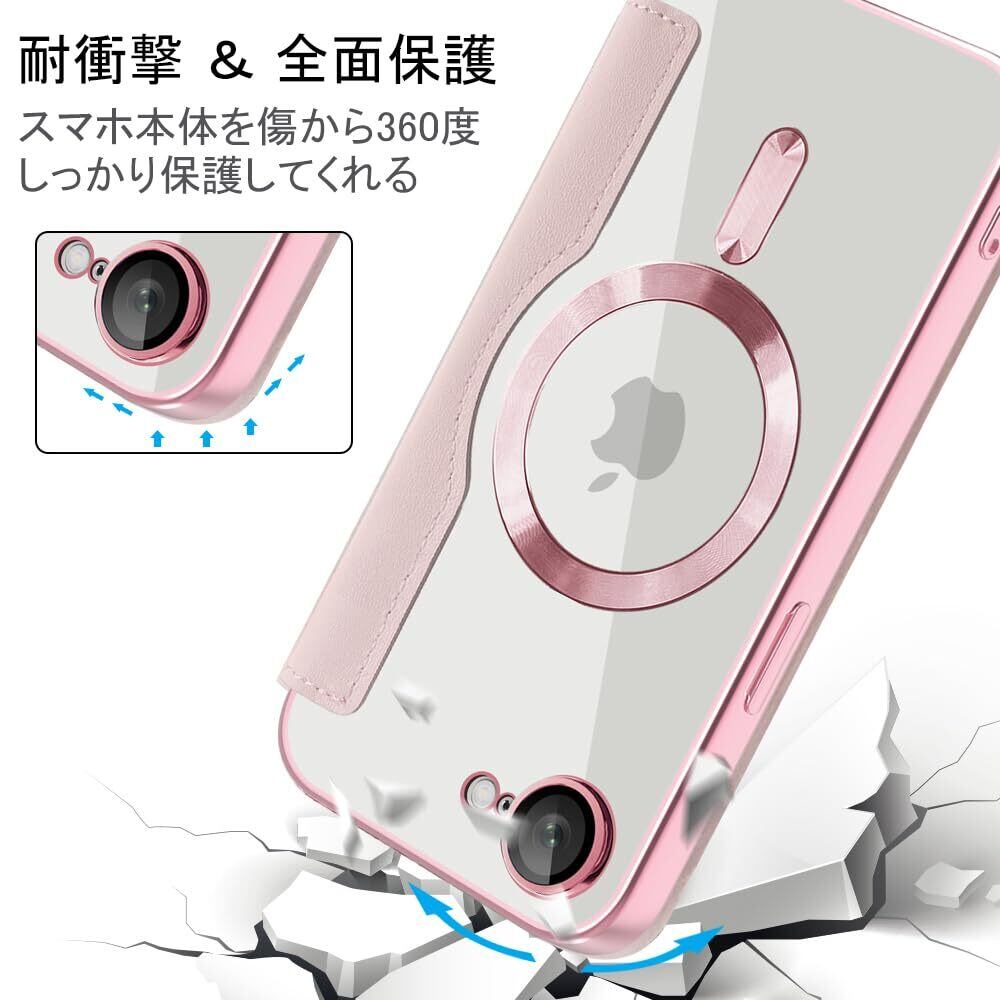 【特価セール】【REHOOF】iPhone 16e ケース 手帳型 magsafe対応 6.1インチ 背面 透明 クリア 財布型 アイフォン 16E ケース マグセーフ 手帳 ワイヤレス充電対応 カード入れ PU革 レザー いphone16 SE4 スマホケース 軽量 薄型 防塵 耐衝撃 全面保護 スマホカバー(ピンク) | impsmile