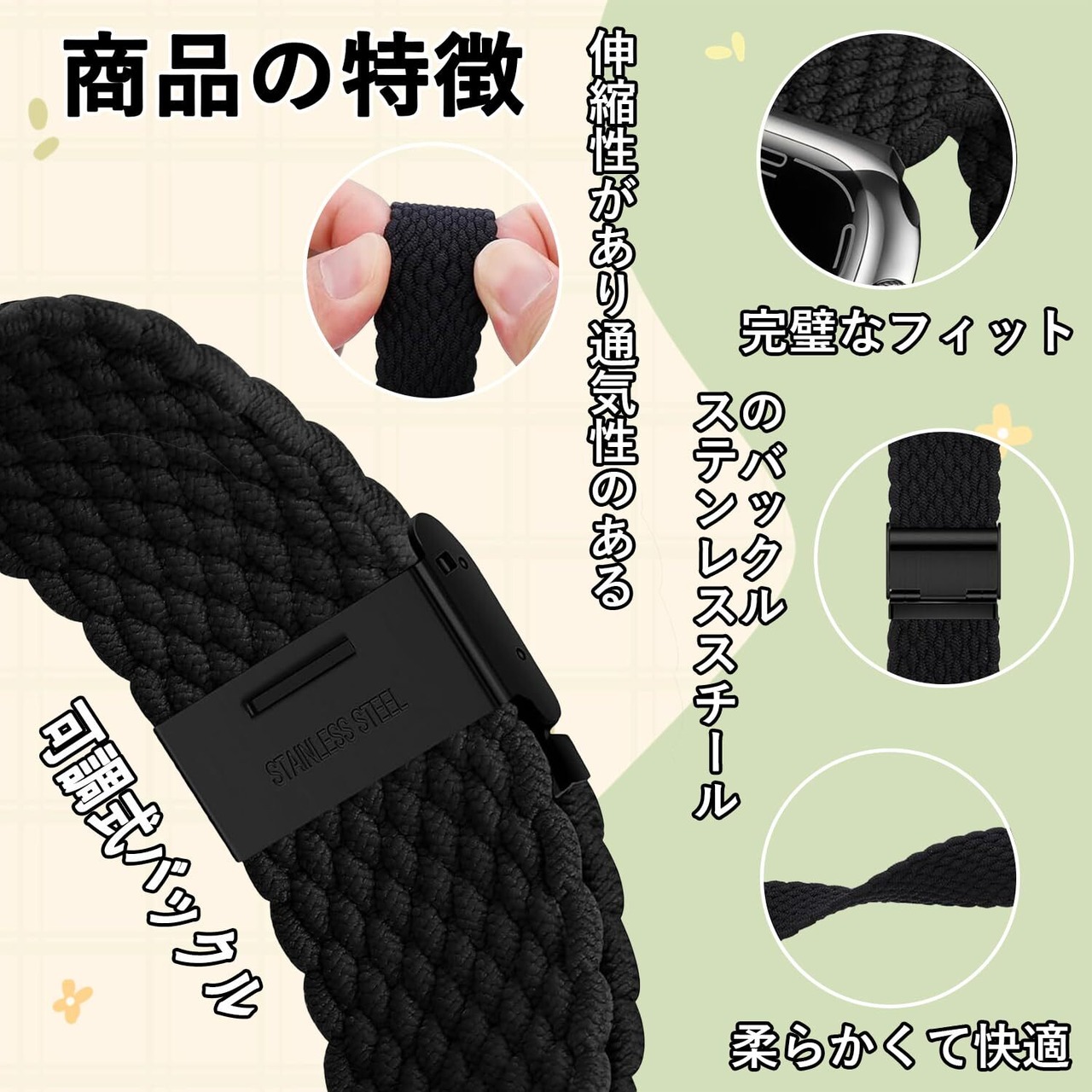 [Sunhel] コンパチブル アップルウォッチ Apple Watch バンド 49mm 46mm 45mm 44mm 42mm 41mm 40mm 38mm ナイロン素材 無段階調節 伸縮 スポーツバンド 高通気性 対応 Apple Watch Ultra SE Series 10/9/8/7/6/5/4/3/2/1