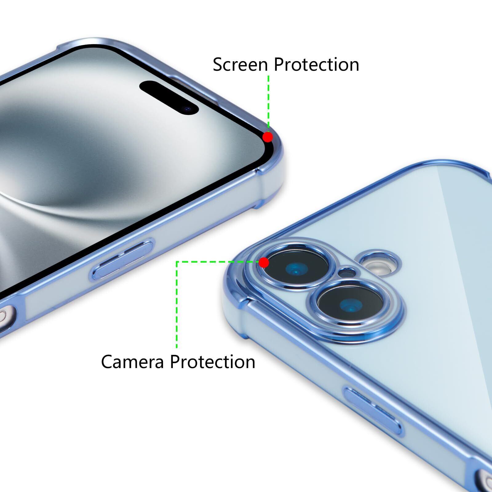 ZTOFERA iPhone 16 用 ハートケース いphone16 ケース 柔軟な TPU シリコン スマホケース メッキ加工 ソフト 軽量 耐衝撃 おしゃれ 韓国 可愛い アイフォン 16 ケース 女子 女性 心パターン 携帯電話カバー ワイヤレス充電対応 (シエラブルー)